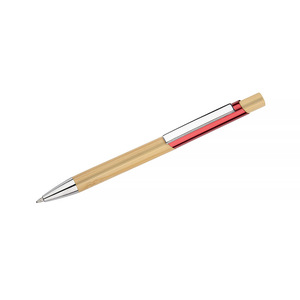 BALIS je jedinečné bambusové pero s výraznými barevnými akcenty s kovovým leskem, které mu dodávají charakter. Klip a stříbrné lemování zvyšují eleganci pera, zatímco mechanismus push-in přispívá k pohodlnému používání. Je vyrobeno z přírodního bambusu a představuje stylovou a ekologickou volbu.