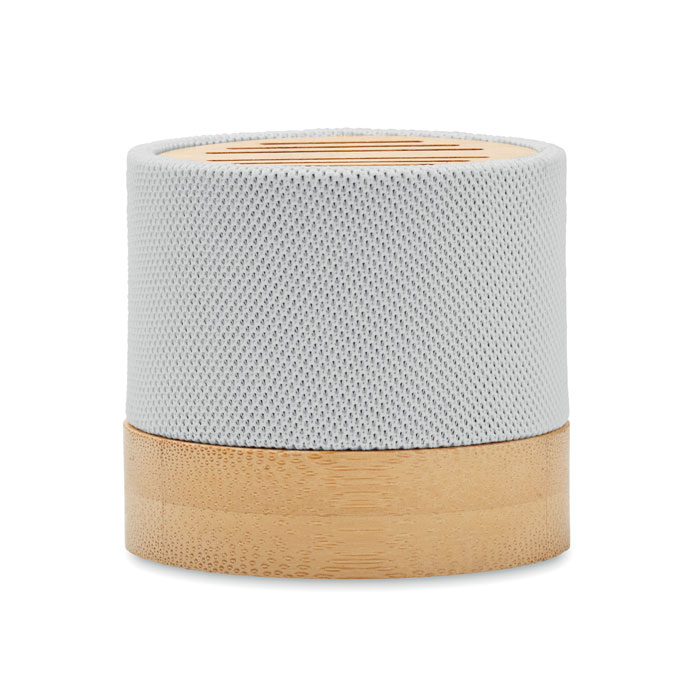 Bezdrátový reproduktor 5.0 v krytu z RPET s bambusovým detailem na horní straně. Se světelnou LED indikací, 1 dobíjecí baterií Li-ION 400 mAh, portem pro SD kartu a kabelem AUX/USB. Funkce volání handsfree. Výstupní údaje: 3W, 3 Ohm a 5V. Doba přehrávání cca 3 h. Bambus je přírodní materiál, může dojít k mírným změnám barvy, dekorace a velikosti.