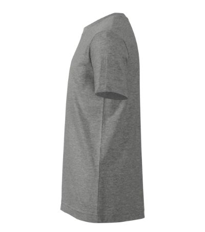 střih s bočními švy, úzký lem průkrčníku z žebrového úpletu 1:1 s 5 % elastanu, vnitřní část průkrčníku začištěna páskou z vrchového materiálu, zpevnění ramenních švů páskou, silikonová úprava
