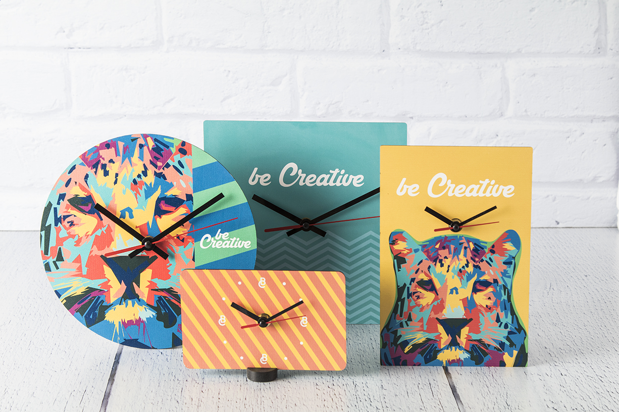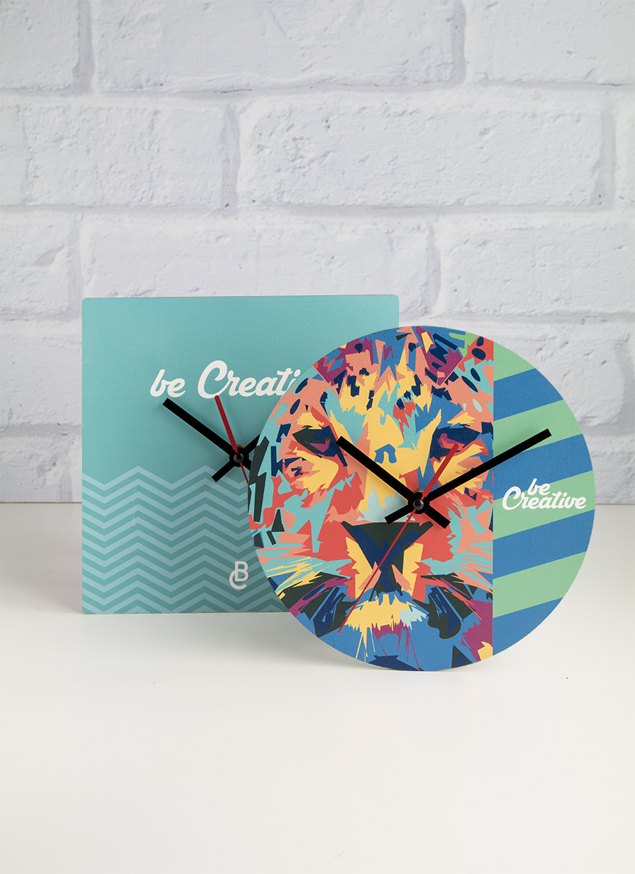 Zakázková výroba nástěnných hodin kulatého tvaru z HDF dřevovláknité desky s vlastní grafikou, dodáváno bez 1 AA baterie. Cena zahrnuje UV LED tisk, nezahrnuje tiskovou přípravu. Min. mn.: 50 ks.