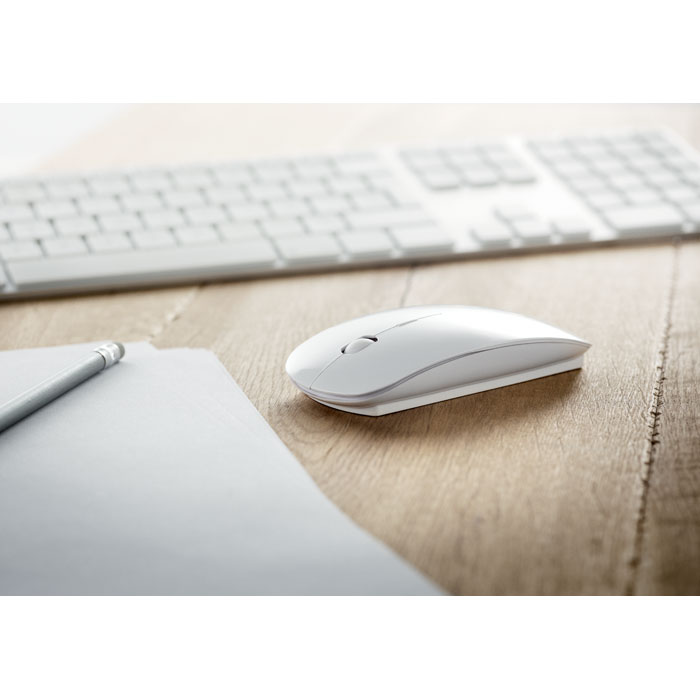 Bezdrátová optická myš z lesklého ABS. 2 AAA baterie nejsou součástí dodávky.
