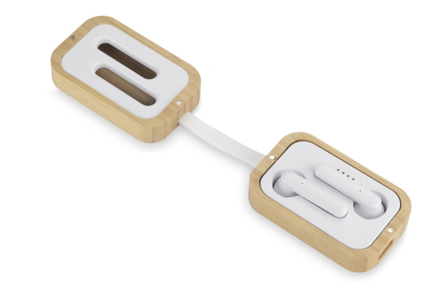Bezdrátové sluchátka BAHO jsou vložené do bambusového pouzdra s magnetickým zavíráním. Díky své zajímavé a nevšední formě nezůstává bez povšimnutí. Jsou vybavené indikátorem úrovně nabíti baterie, díky čemu zařízení nikdy nepřekvapí nízkým stavem nabíti baterie. Dotykové ovládání sluchátek přináší větší pohodlí při používání. Sluchátka mají zabudovaný mikrofon, co umožňuje provádění rozhovorů. Může se používat pouze jedno sluchátko. Technické údaje: verze Bluetooth: V5.1, dosah Bluetooth: až 10 m, kapacita baterie v každém sluchátku: 30 mAh, kapacita baterie v pouzdru: 200 mAh, max. výdrž až 3 hod., nabíjecí konektor typu-c.