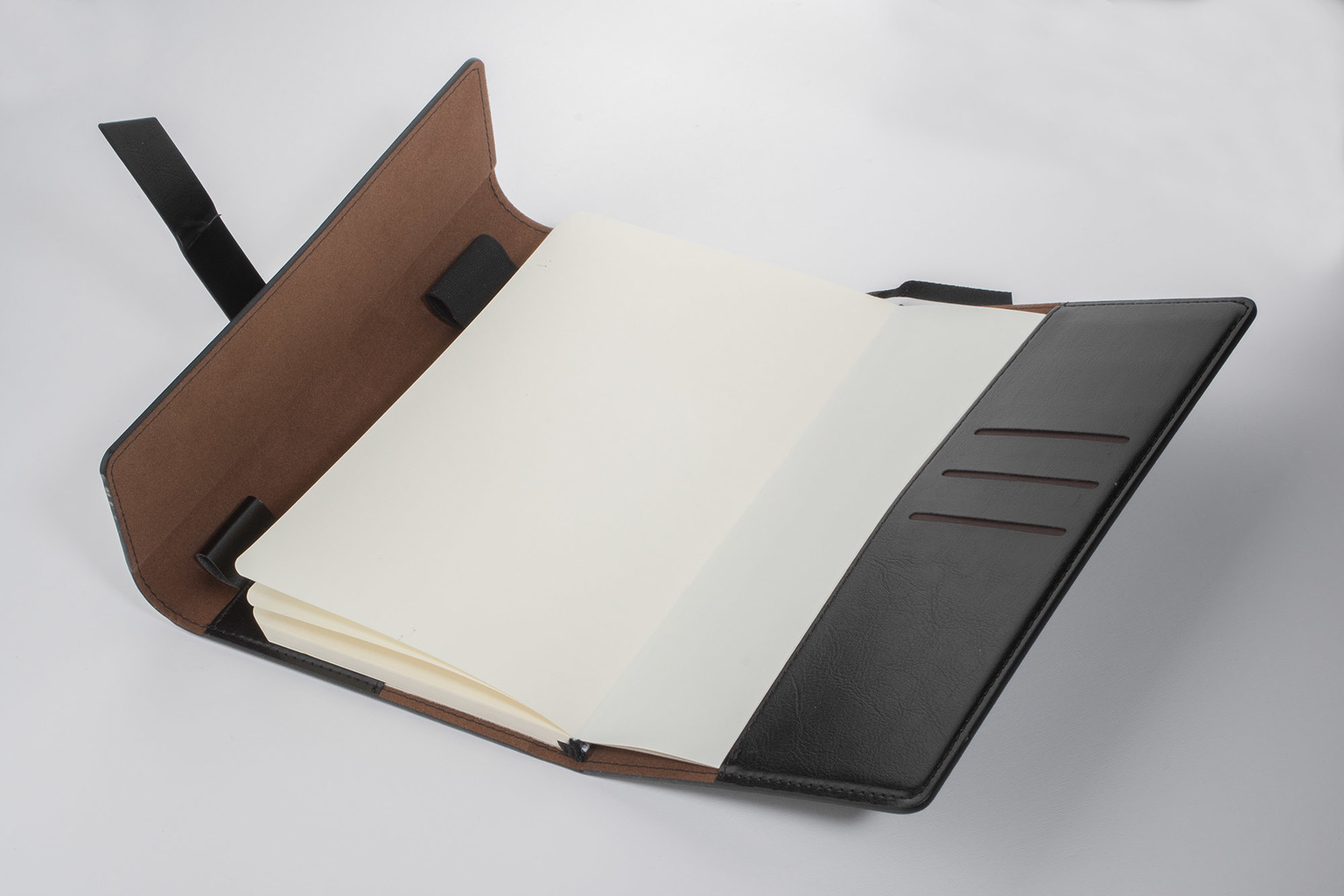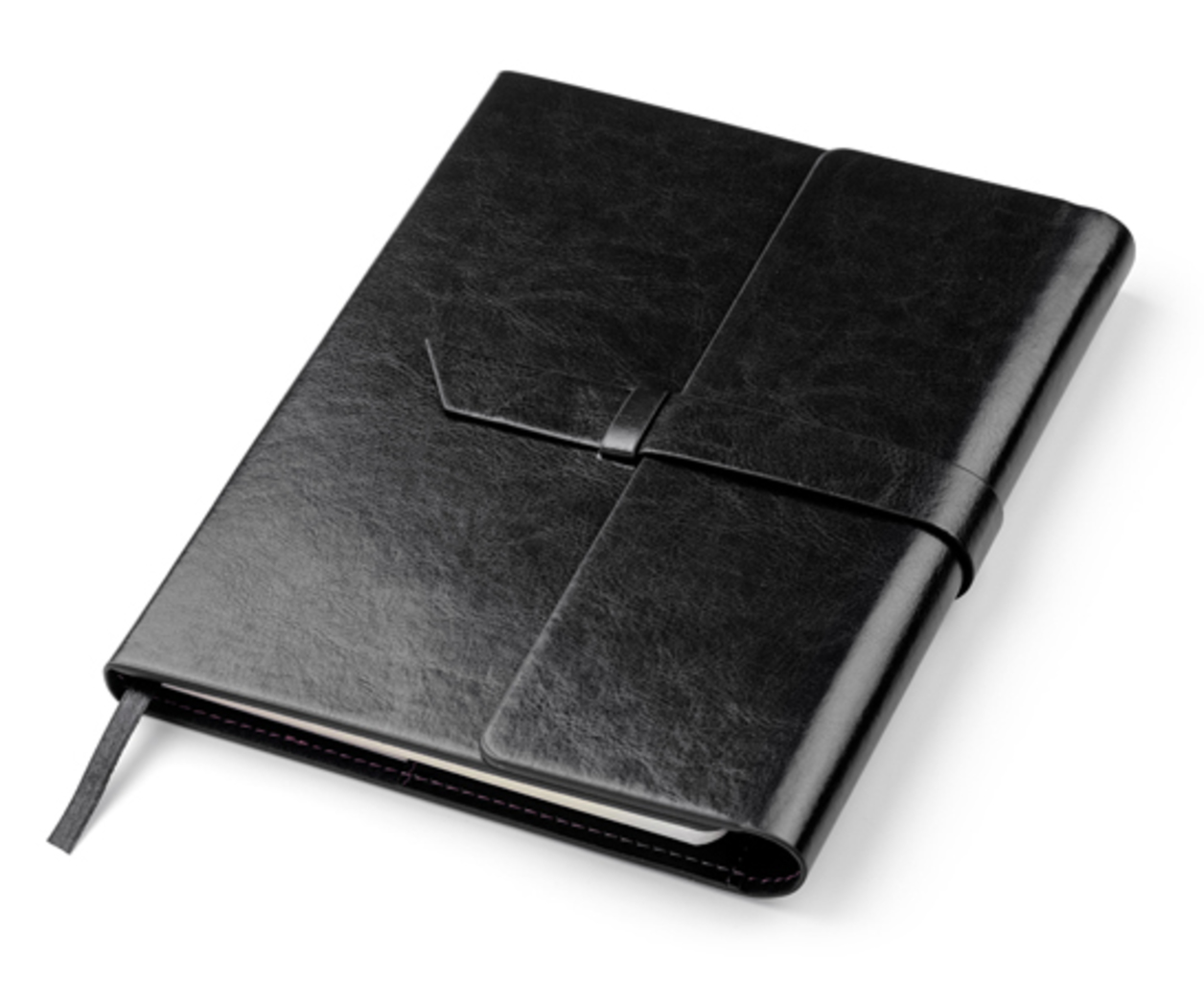 VASCO je elegantní zápisník formátu A5 s klasickým koženkovým obalem (PU). Zápisník má 80 linkovaných stran a praktickou záložku se stužkou. Uvnitř obálky je prostor pro 3 vizitky, pero a USB flash disk. Obal není pevně spojen s blokem zápisníku, ale nasouvá se na první stránky, což umožňuje výměnu zápisníku. Zápisník lze uzavřít koženkovým řemínkem (PU).