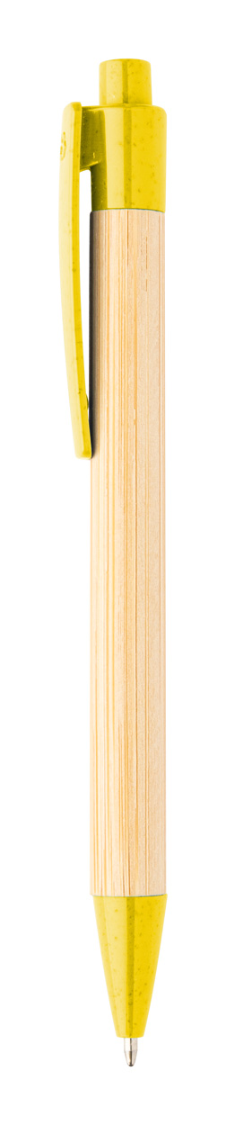 Kuličkové pero z bambusu s klipem a špičkou ze slámy, s modrou náplní.