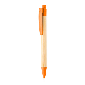 Kuličkové pero z bambusu s klipem a špičkou ze slámy, s modrou náplní.