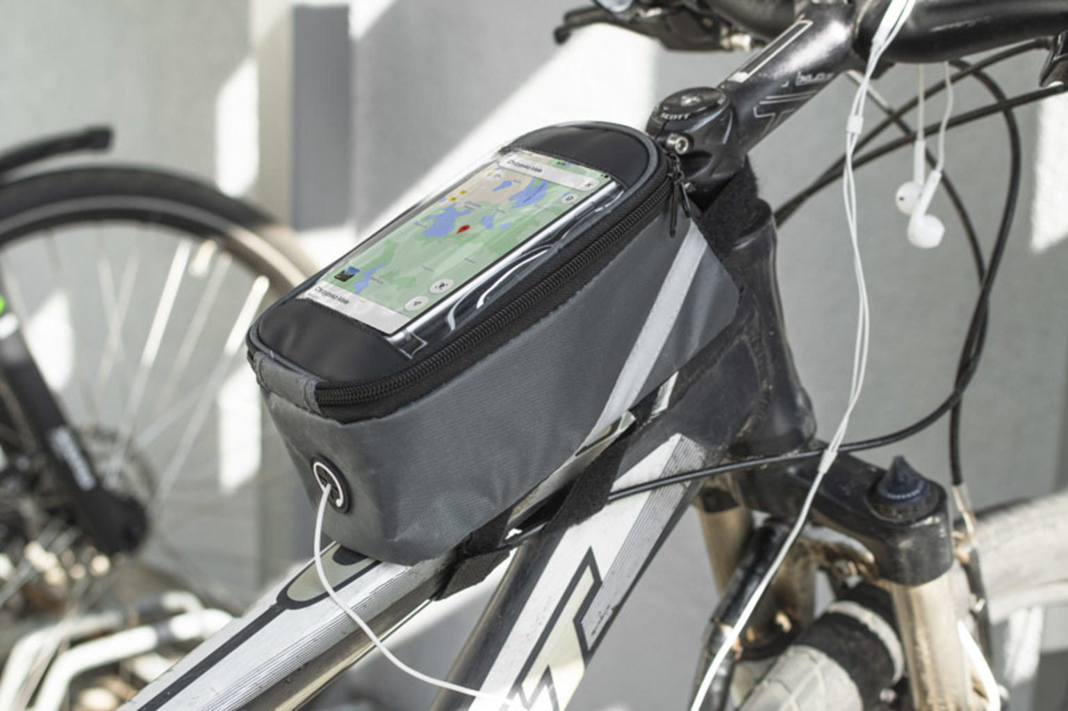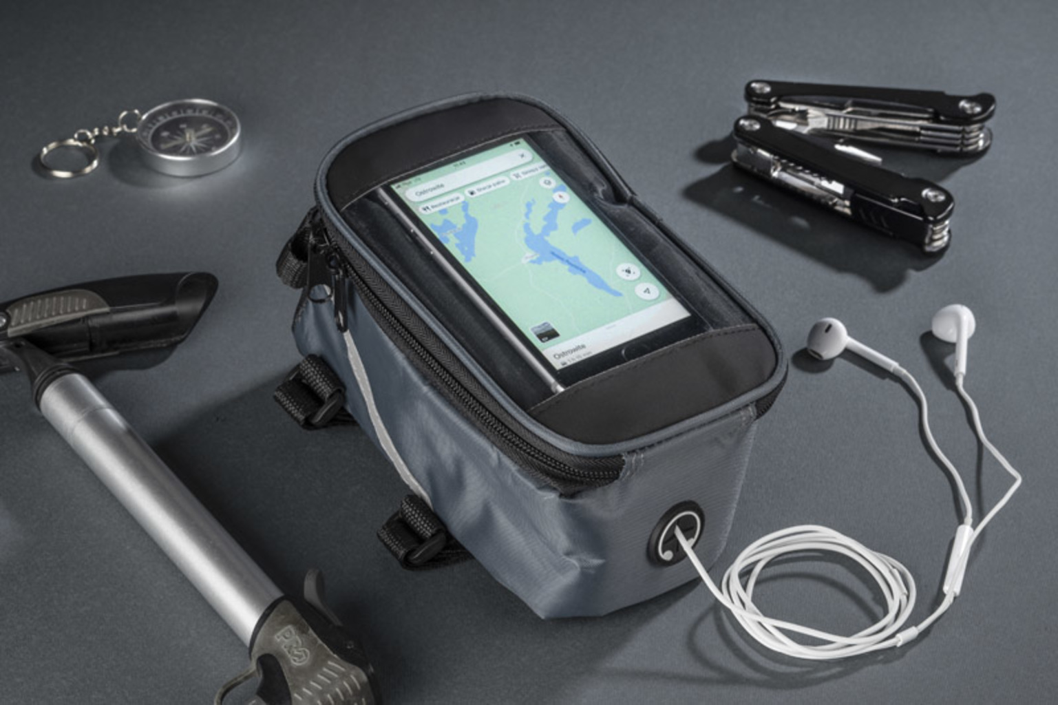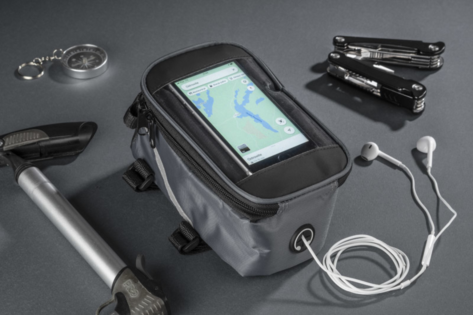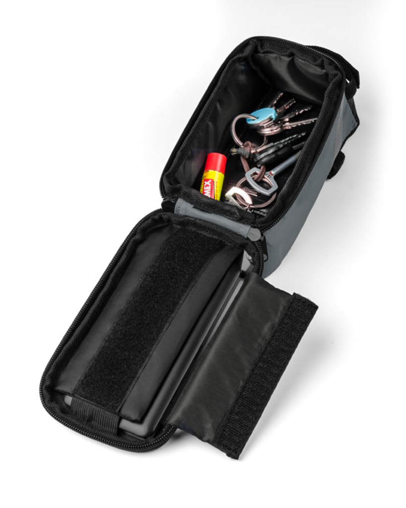 Ta taška se pevně připojuje k rámu kola a má prostornou kapsu na zip pro malé předměty. Navíc VELO poskytuje přístup k sluchátkům a kapse s dotykovým filmem pro váš smartphone, který vám umožní používat jej, zatímco zůstává v tašce. Pohled na navigaci nebo ovládání přehrávače hudby už není problém - dokonce i při jízdě na kole.