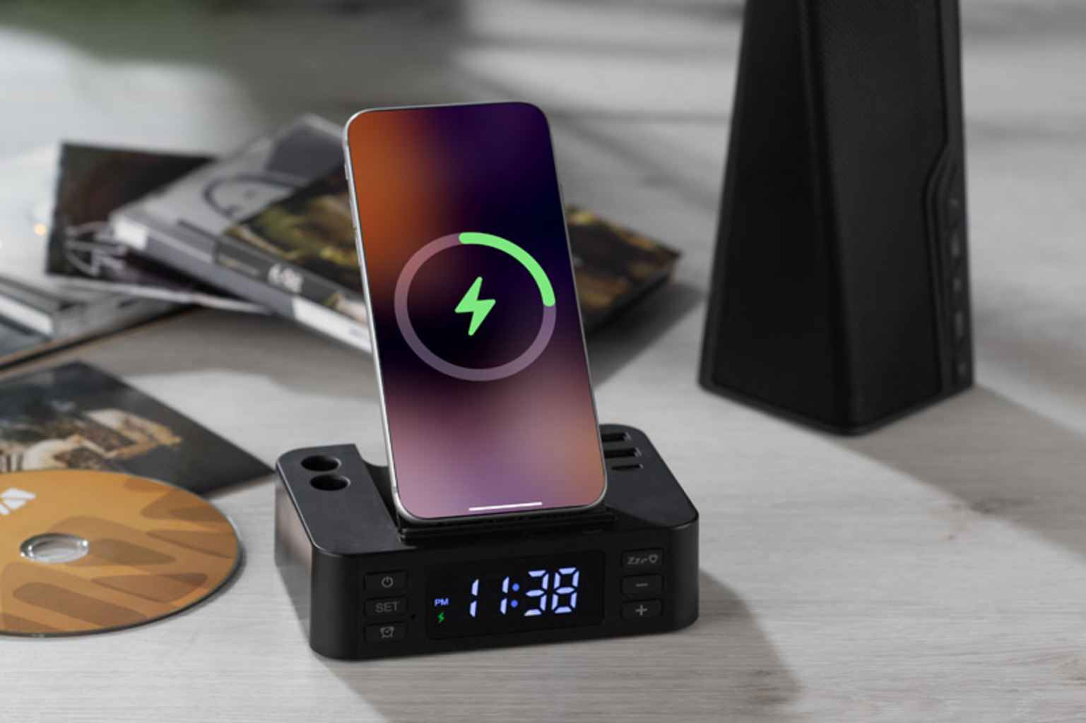 Budík s indukční nabíječkou CLOCKI