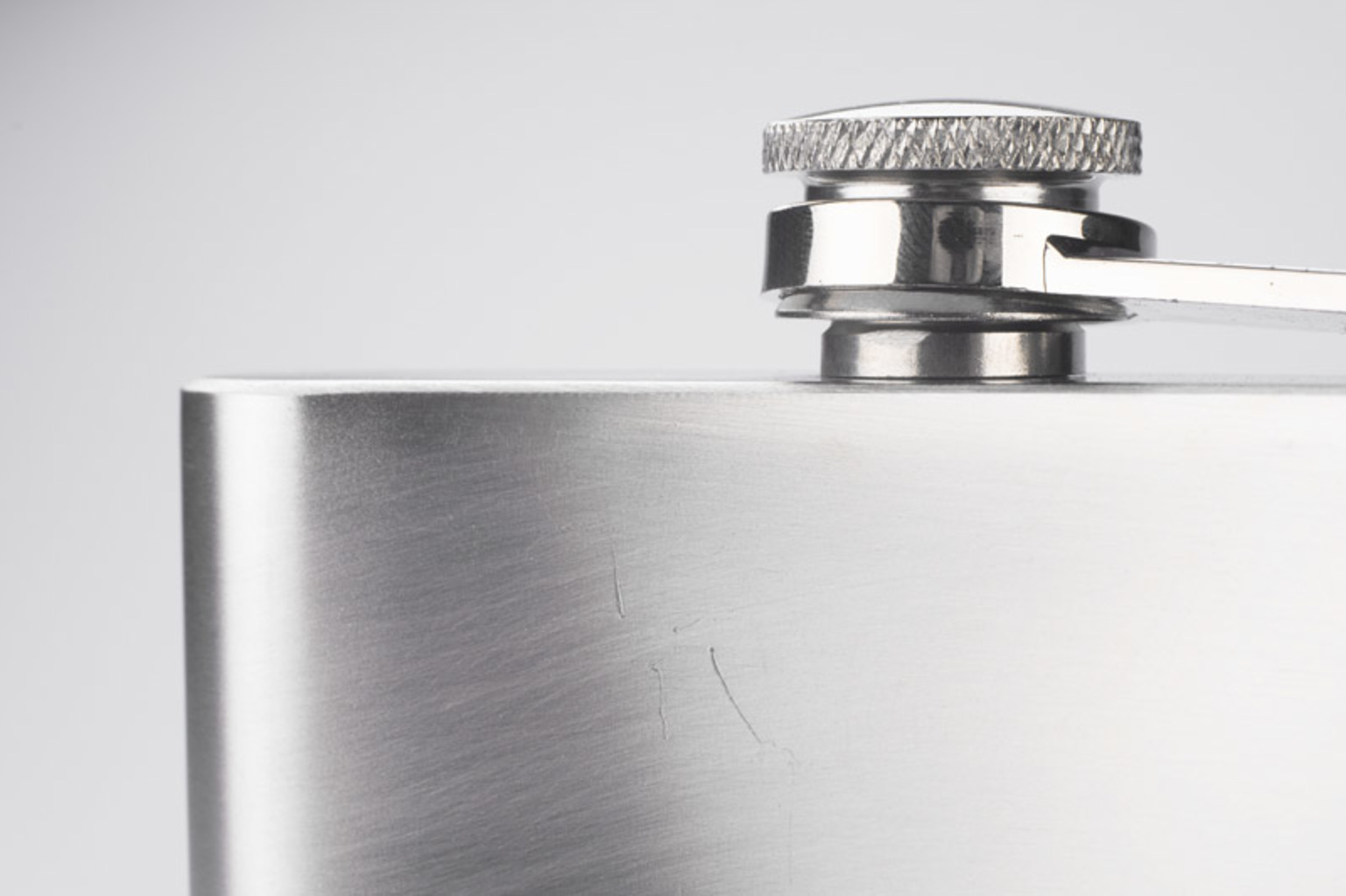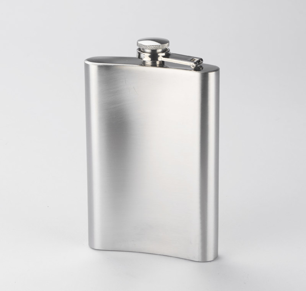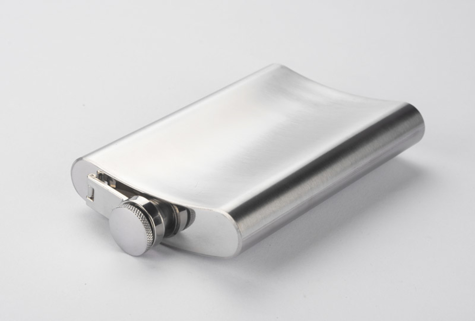Nerostné ocelové flaška na líh o objemu 240 ml se bezpečným uzávěrem. Logo může být vyryto na povrchu článku.
