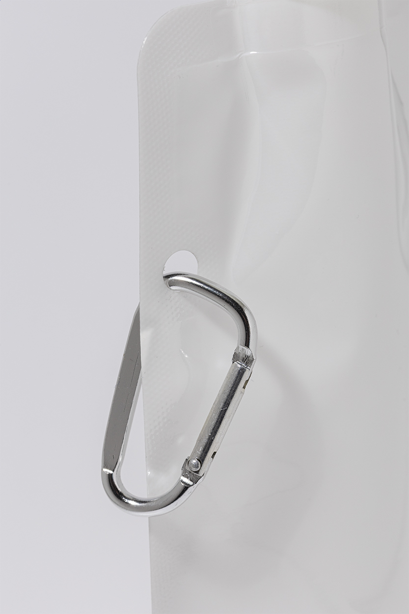Skládací sportovní láhev z RPET s víčkem na pití a hliníkovou karabinou, 500 ml. Bez BPA. Nevhodná pro sycené nápoje.