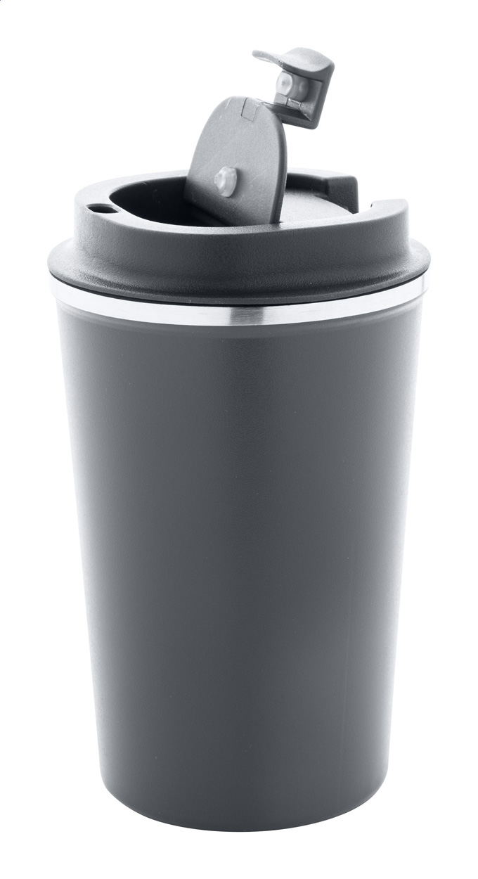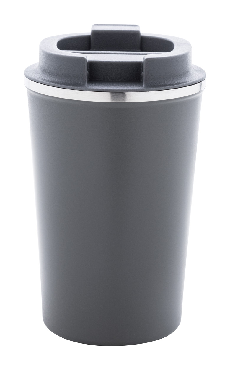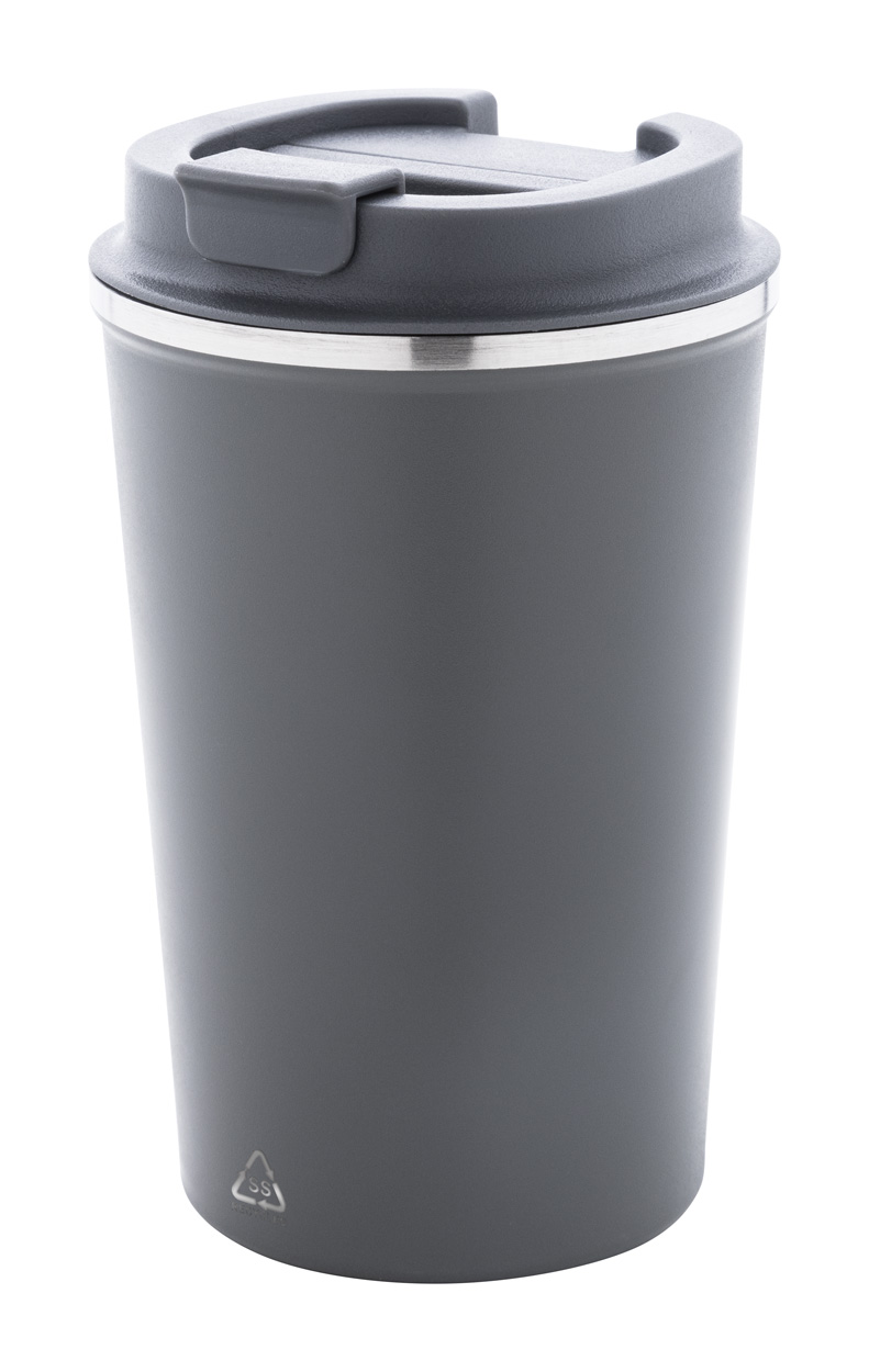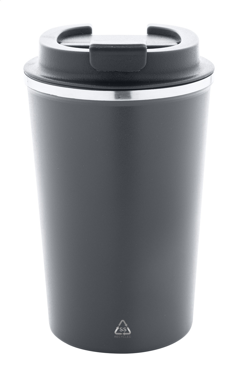 Dvoustěnný termo hrnek z recyklované nerezové oceli s víčkem na pití z PP. 350 ml.