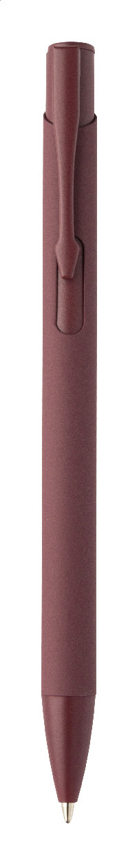 Kuličkové pero z recyklovaného hliníku s pogumovaným tělem a barevnými lesklými kovovými díly. Se speciálním povrchem pro zrcadlové gravírování, které odpovídá kovovým částem. S modrou náplní.