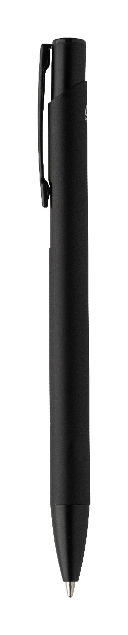 Kuličkové pero z recyklovaného hliníku s pogumovaným tělem a barevnými lesklými kovovými díly. Se speciálním povrchem pro zrcadlové gravírování, které odpovídá kovovým částem. S modrou náplní.