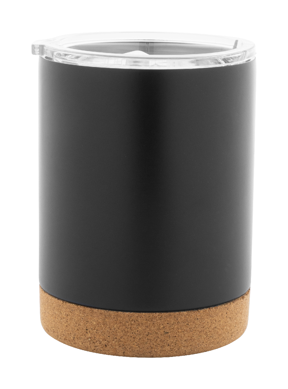 Dvoustěnný nerezový termohrnek s víčkem na pití a dnem z přírodního korku, 330 ml. V kraftové papírové krabici.