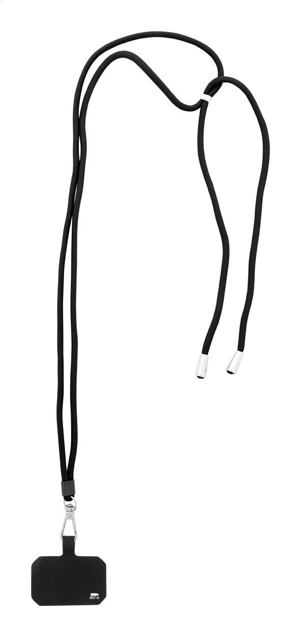 RPET lanyard s nastavitelnou délkou pro držák na mobil s kovovou karabinou a vložkou na telefon.