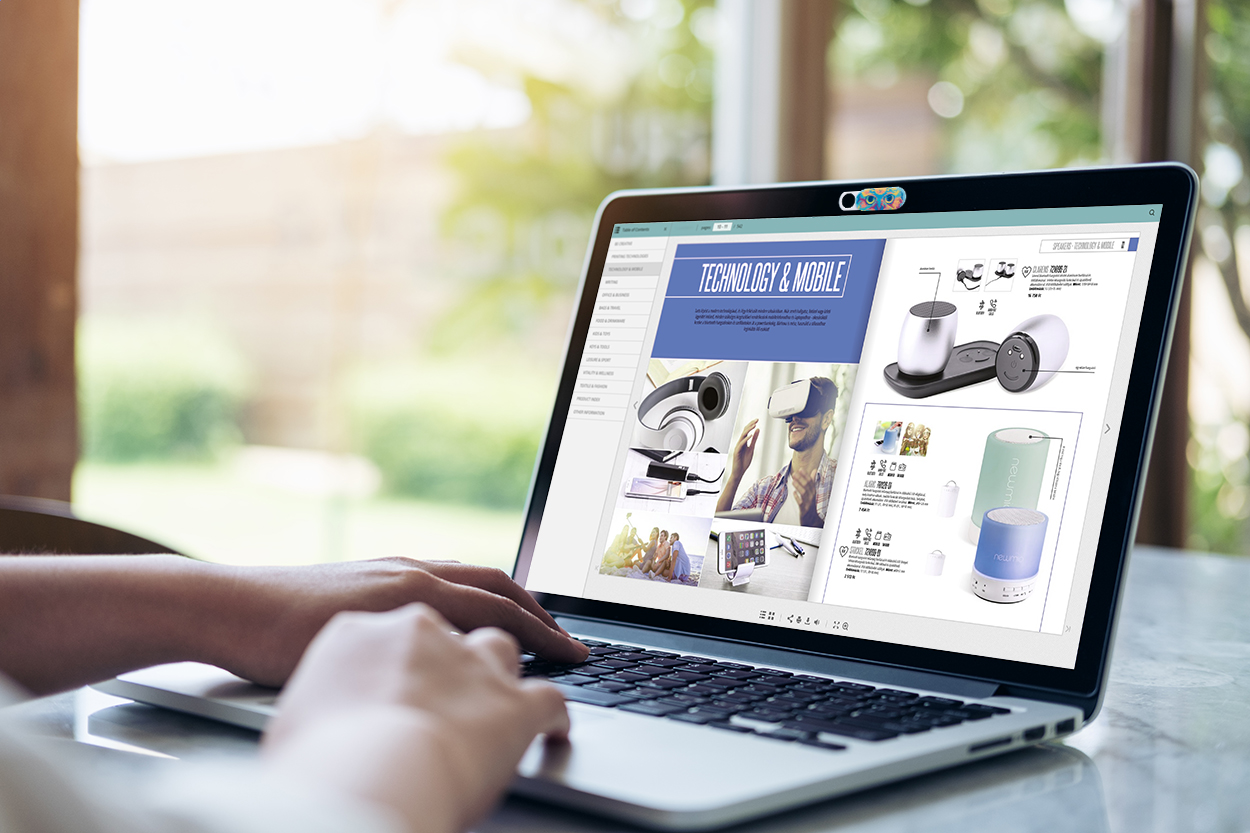 Celobarevně potištěná plastová krytka webových kamer na zakázku s posuvným krytem a lepicí zadní stranou. S digitálně potištěnou papírovou kartou. Cena zahrnuje digitální potisk přední strany papírové karty a UV LED potisk na krytce, nezahrnuje tiskovou přípravu. Min. mn.: 100 ks.