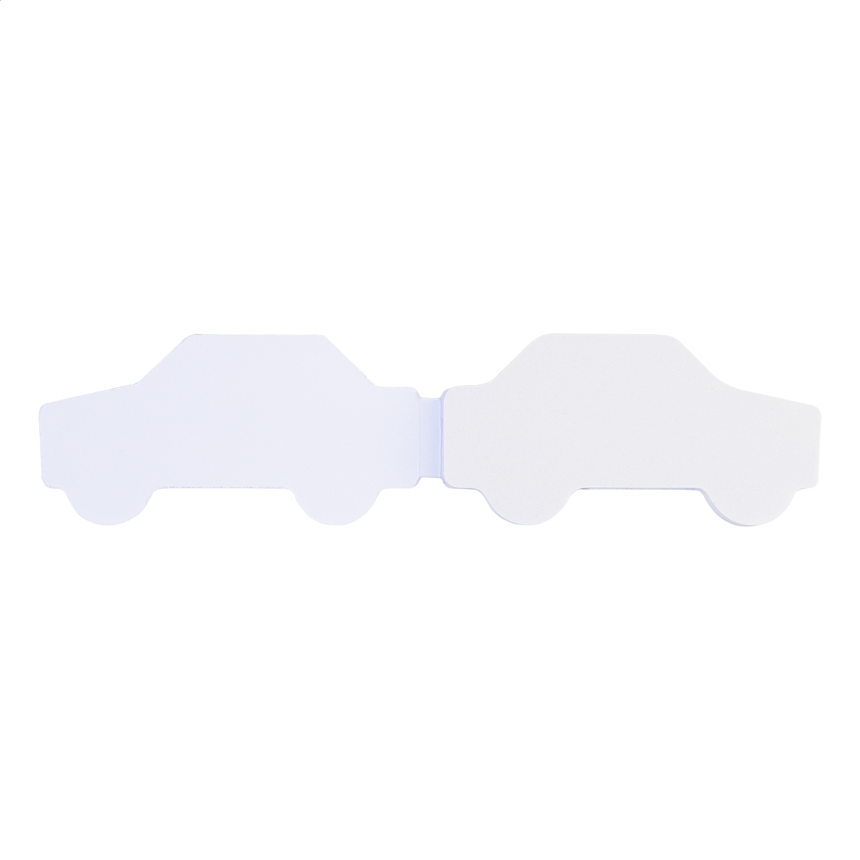 Samolepicí blok ve tvaru auta na zakázku, potažený papírem. Obsahuje 50 listů samolepících papírů z recyklovaného papíru. Cena zahrnuje vnější obal s plnobarevným potiskem, nezahrnuje tiskovou přípravu. Min. mn: 100 ks.