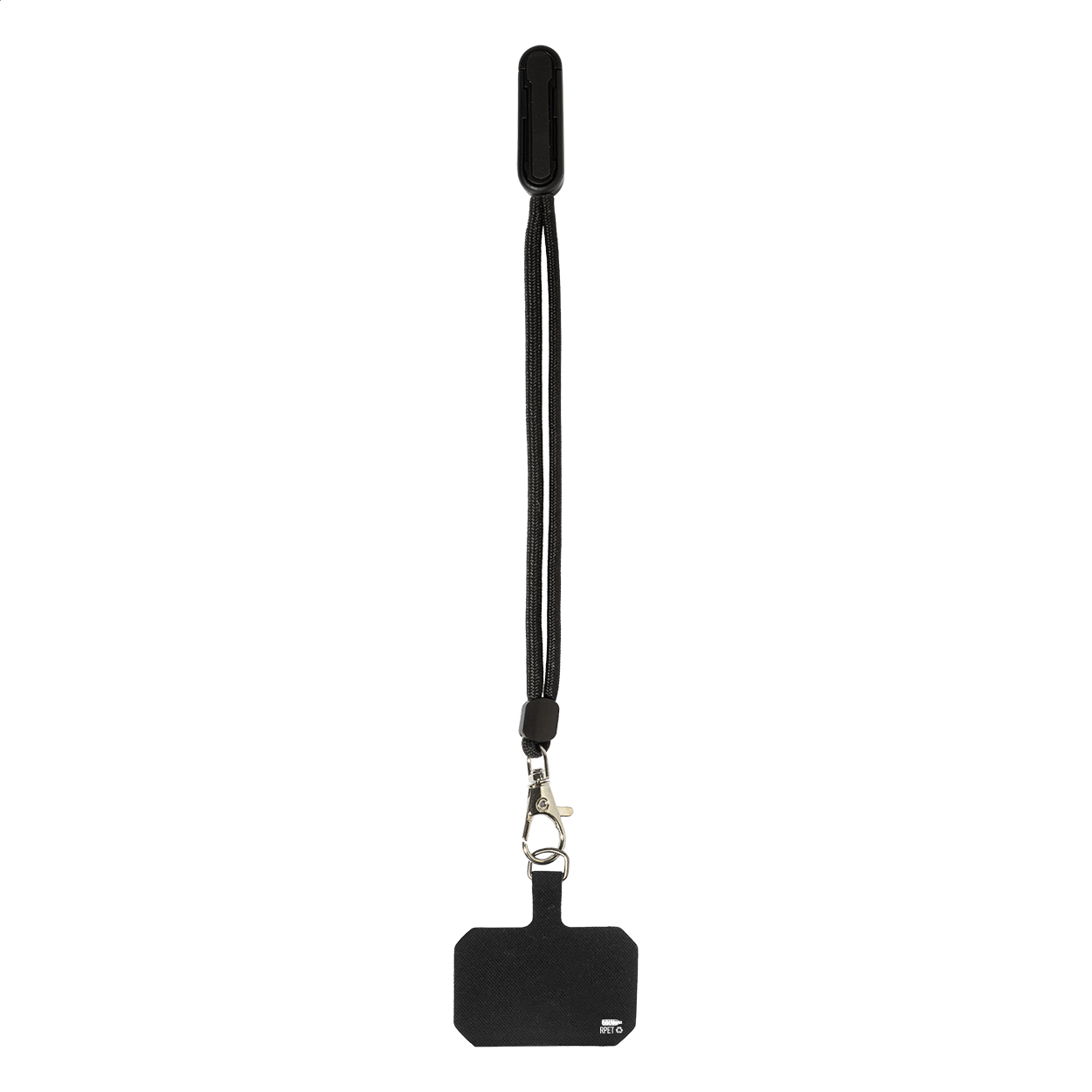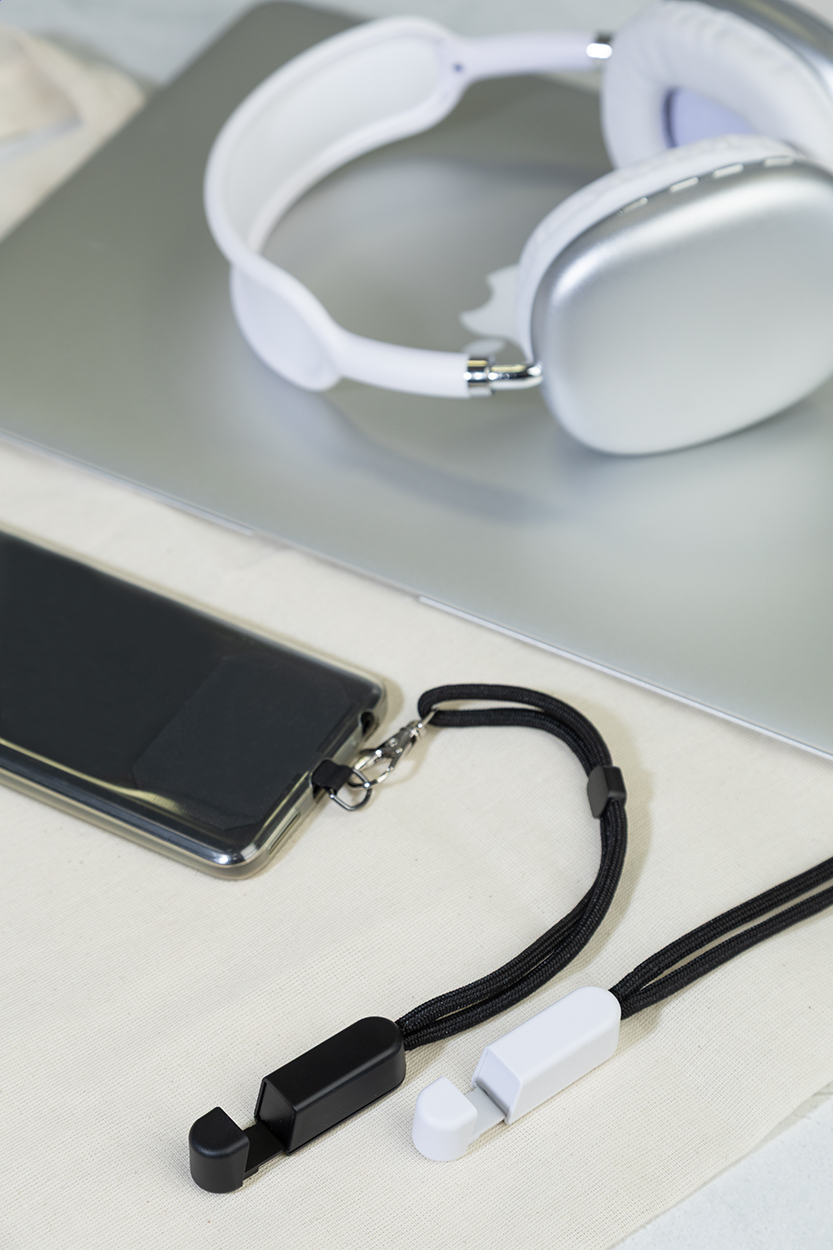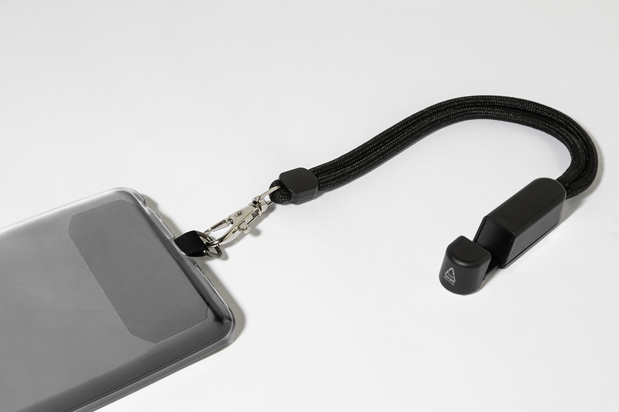 Držák na mobil z RPET s vložkou pro telefon a stojánkem na mobilní telefon z recyklovaného ABS.