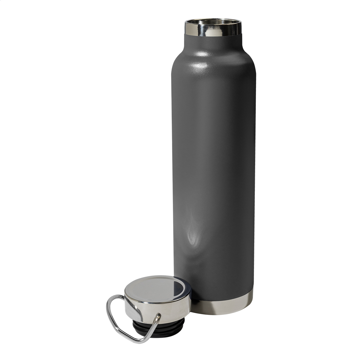Dvoustěnná nerezová, mědí izolovaná termoska s přenosným víčkem, 650 ml. Měděná izolace udrží nápoje horké 12 a studené 24 hodin.