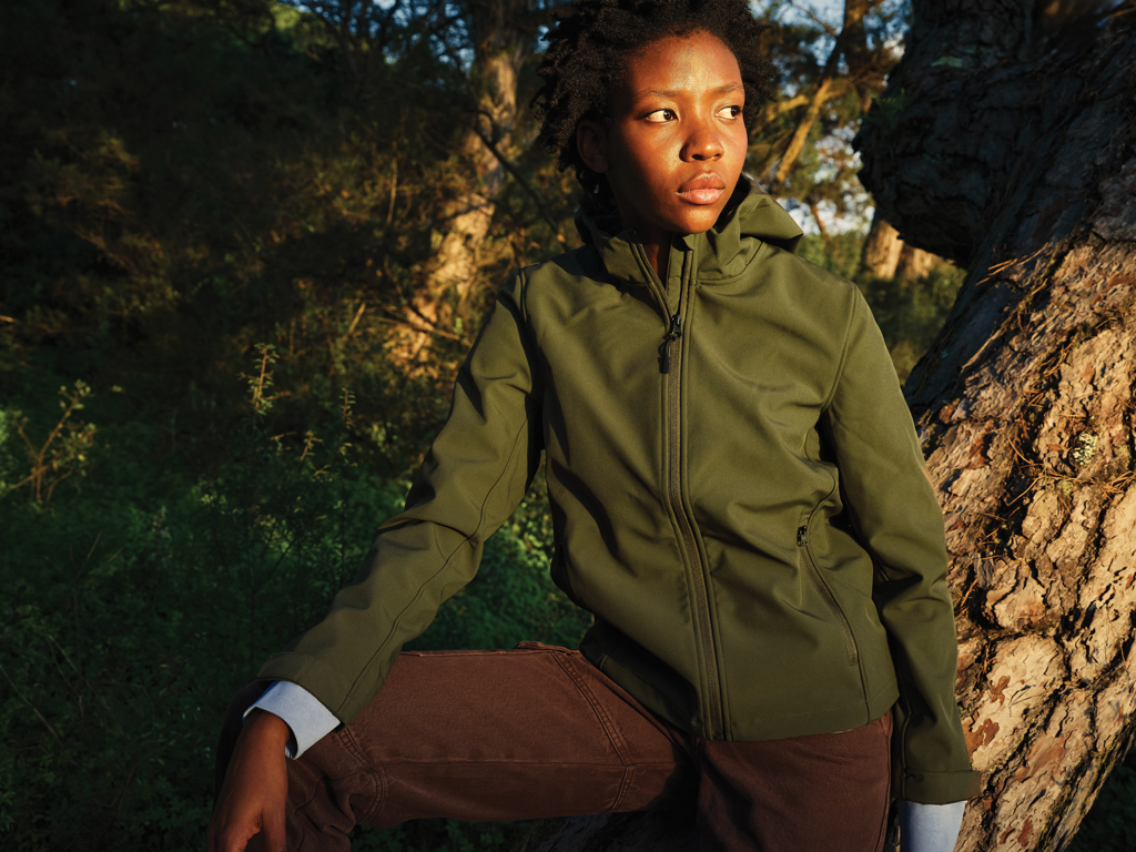 Dámská sofshellová bunda vyrobená z 3-vrstvého recyklovaného polyesteru s gramáží 300 g/m², TPU membrána a měkký mikrofleece na vnitřní straně. Reverzní zip na přední straně, kapsy na zip po stranách. Přizpůsobitelná kapuce pro zvýšenou ochranu. Přizpůsobitelné rukávy pomocí suchých zipů. Repelentnost vodě zajišťuje BIONIC-FINISH® ECO, voděodolnost: 5 000 mm, prodyšnost: 3000 g/m2/24h. Obsah recyklovaných materiálů je garantován díky využití technologie AWARE™, která kombinuje možnost skenování materiálu a technologii blockchain. Každý produkt Iqoniq vlastní unikátní štítek s QR kódem, který odkazuje na příslušný digitální pas produktu. 2 % z výtěžku každého prodaného kusu je darováno na Water.org. Certifikováno OEKO-TEX® STANDARD 100 2303045 Centexbel. Dostupné i v pánské variantě.