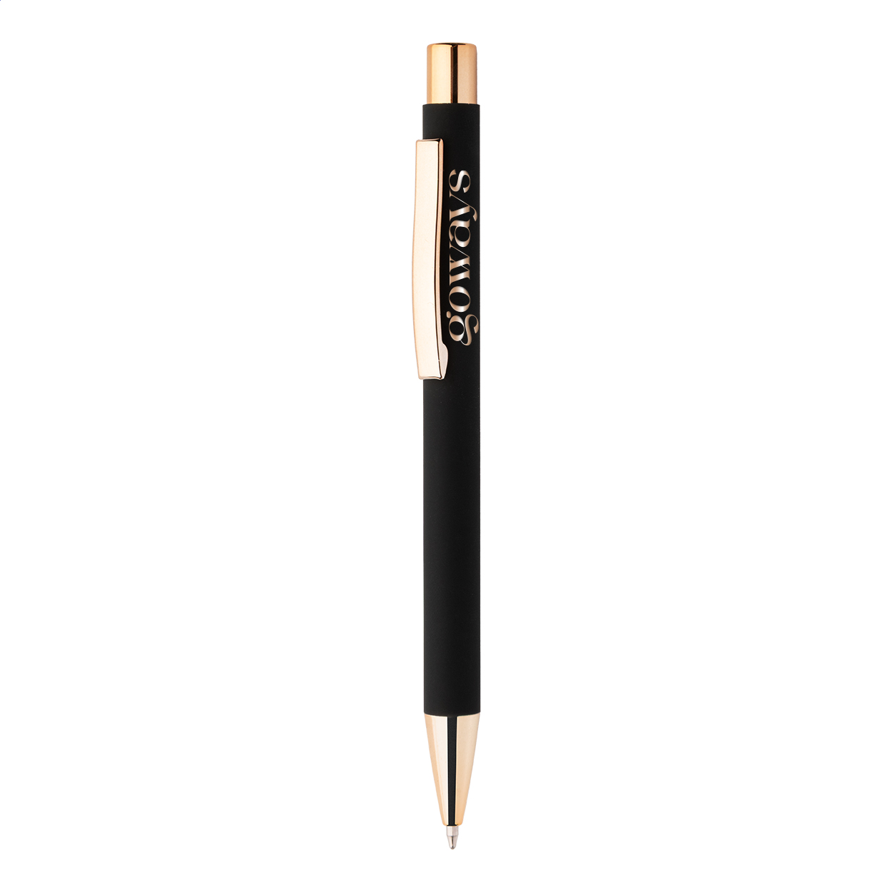 Kuličkové pero z recyklovaného hliníku s černým pogumovaným tělem a barevnými lesklými kovovými částmi. Se speciálním povrchem pro zrcadlové gravírování, které ladí s kovovými částmi. S modrou náplní.