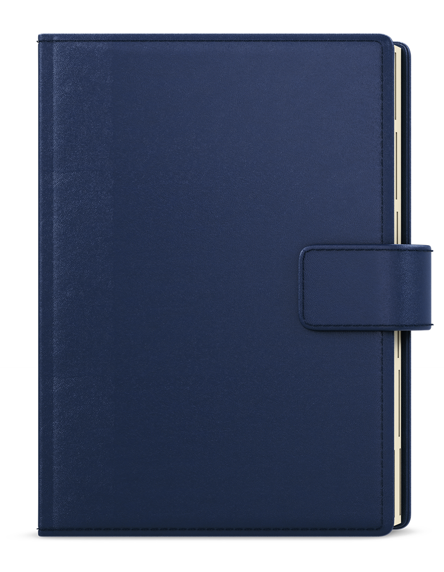 | Barva a materiál: | jemný matný materiál, ražba, oboustranná pěnová výplň desek, obšití v barvě potahu, magnetická přezka, poutko na tužku, 3 vnitřní kapsy, šitá vazba V8, kapitálky, stužka, perforované rožky, papírová manžeta | ||||||||||||||||||||||