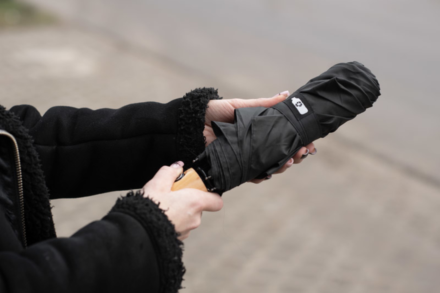 Deštník RALO je stylové a pohodlné řešení do každého počasí. Díky automatickému mechanismu otevírání a zavírání se rozkládá stisknutím tlačítka na dřevěné rukojeti. Stříška z odolného polyesterového materiálu rPET 190T účinně chrání před deštěm, zatímco kovový a sklolaminátový rám zvyšuje odolnost proti větru. Ten doplňuje dřevěné tlačítko na zavíracím popruhu, které deštníku dodává originální nádech. Díky možnosti označení je deštník RALO skvělou volbou jako elegantní reklamní pomůcka.