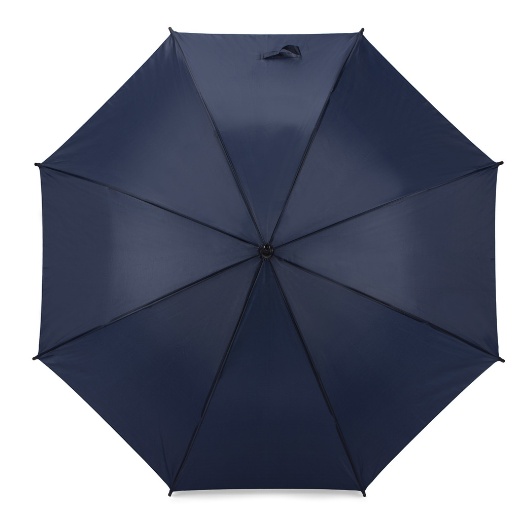 Automatické otevírací deštník s křivkovou dřevěnou rukojetí. Otevřený deštník má průměr 103 cm a délka složeného deštníku je 88 cm.
