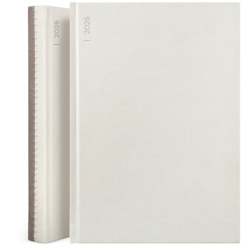 Béžový designový denní diář. Specifikace Materiál desek koženka Balení: transparentní fólie – 5 kusů Vnitřní strany Měsíční plánovač 2025 a 2026 Přehledný kalendář 2025 a 2026 Plánovací kalendář Daňový kalendář Poznámky Papír FSC Možnosti brandingu od 50 ks: sleporažba, sítotisk, ražba folií PS: Při odběru více než 300 kusů realizujeme výrobu diářů dle vašich specifikací.