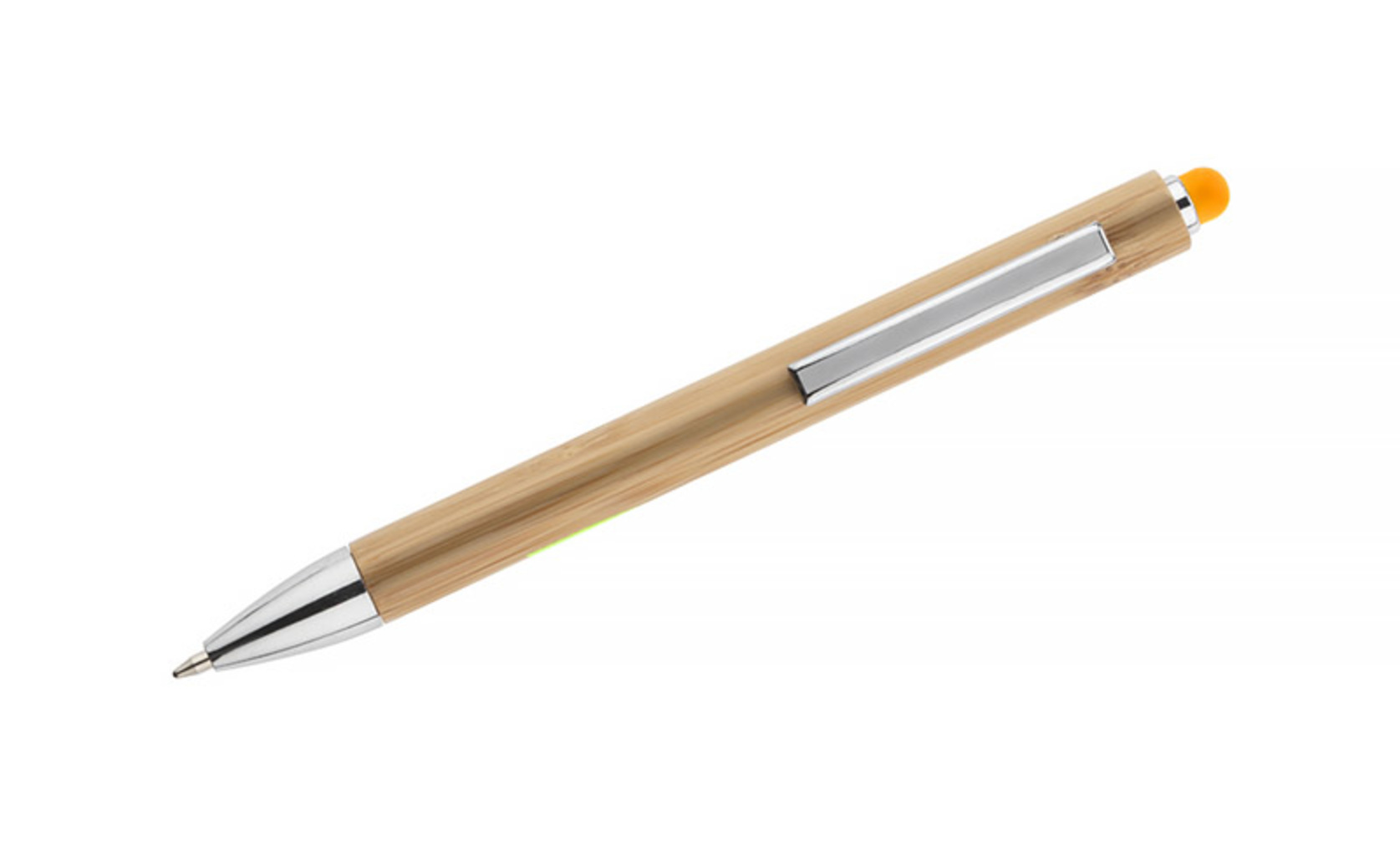 Tělo TUSO je vyrobeno výhradně z bambusu. Chromové povrchové úpravy dodávají jeho eleganci přidanou hodnotu. Barevná špička navržená pro použití s dotykovými obrazovkami je zajímavá dekorace. Automatické kuličkové pero. Náplň typu G2 modře.