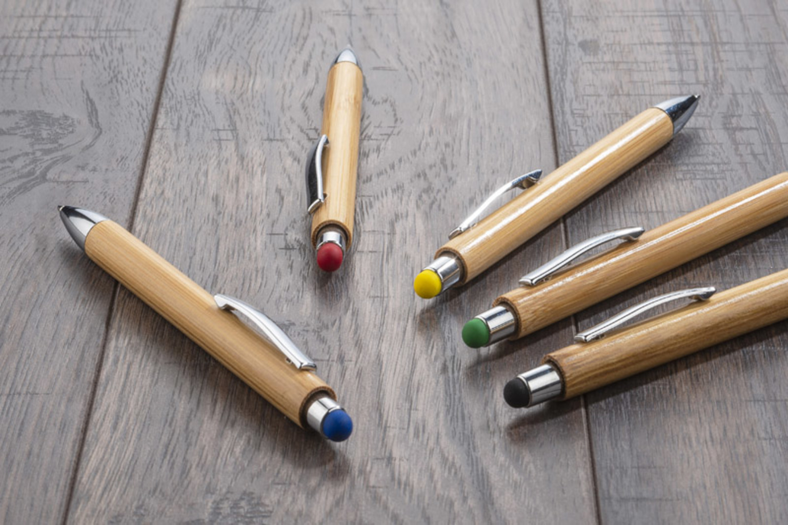 Tělo TUSO je vyrobeno výhradně z bambusu. Chromové povrchové úpravy dodávají jeho eleganci přidanou hodnotu. Barevná špička navržená pro použití s dotykovými obrazovkami je zajímavá dekorace. Automatické kuličkové pero. Náplň typu G2 modře.
