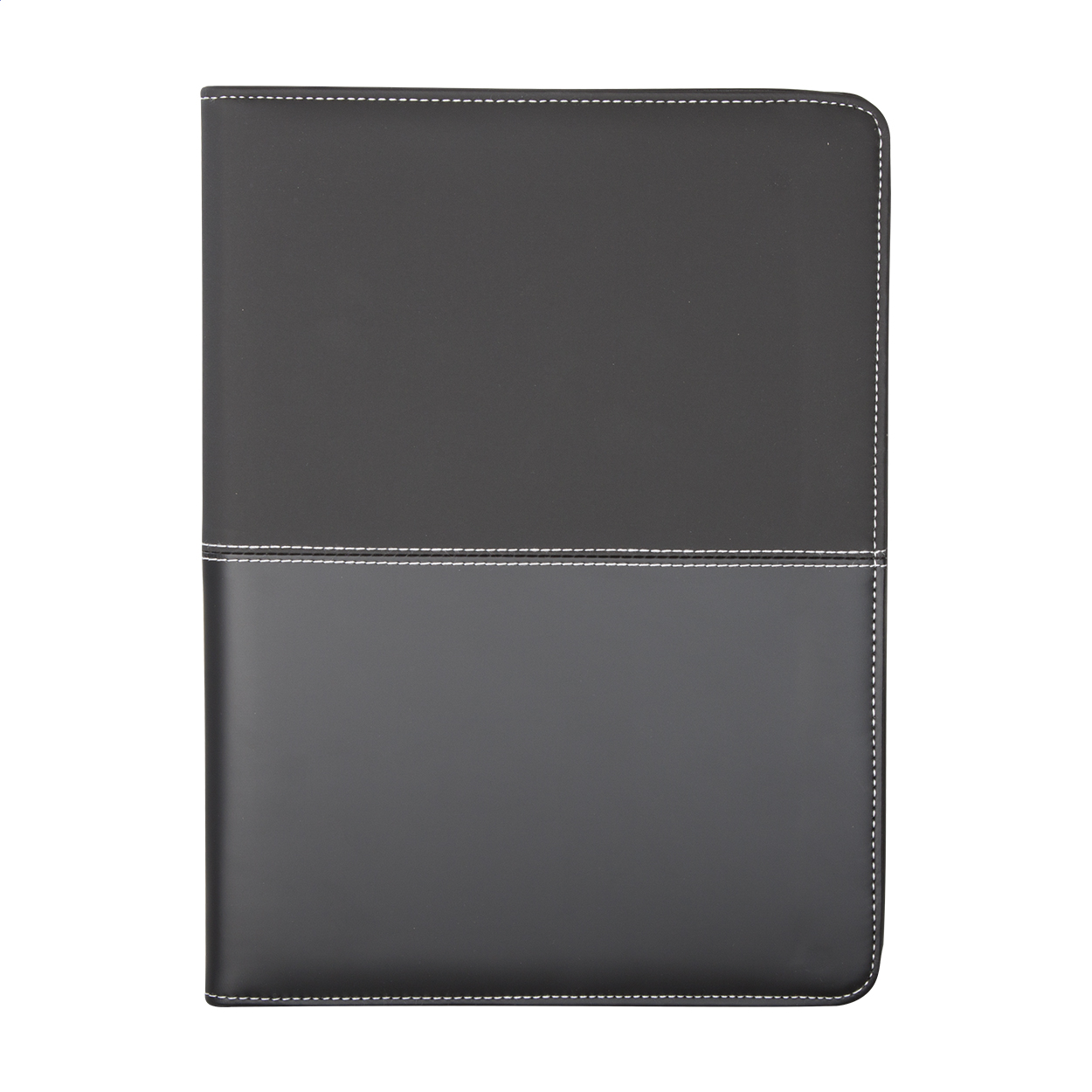 Sloha A4 na dokumenty na zip z umělé kůže s 20 listým linkovaným blokem, uchycením propisky a přihrádkou pro vizitky.