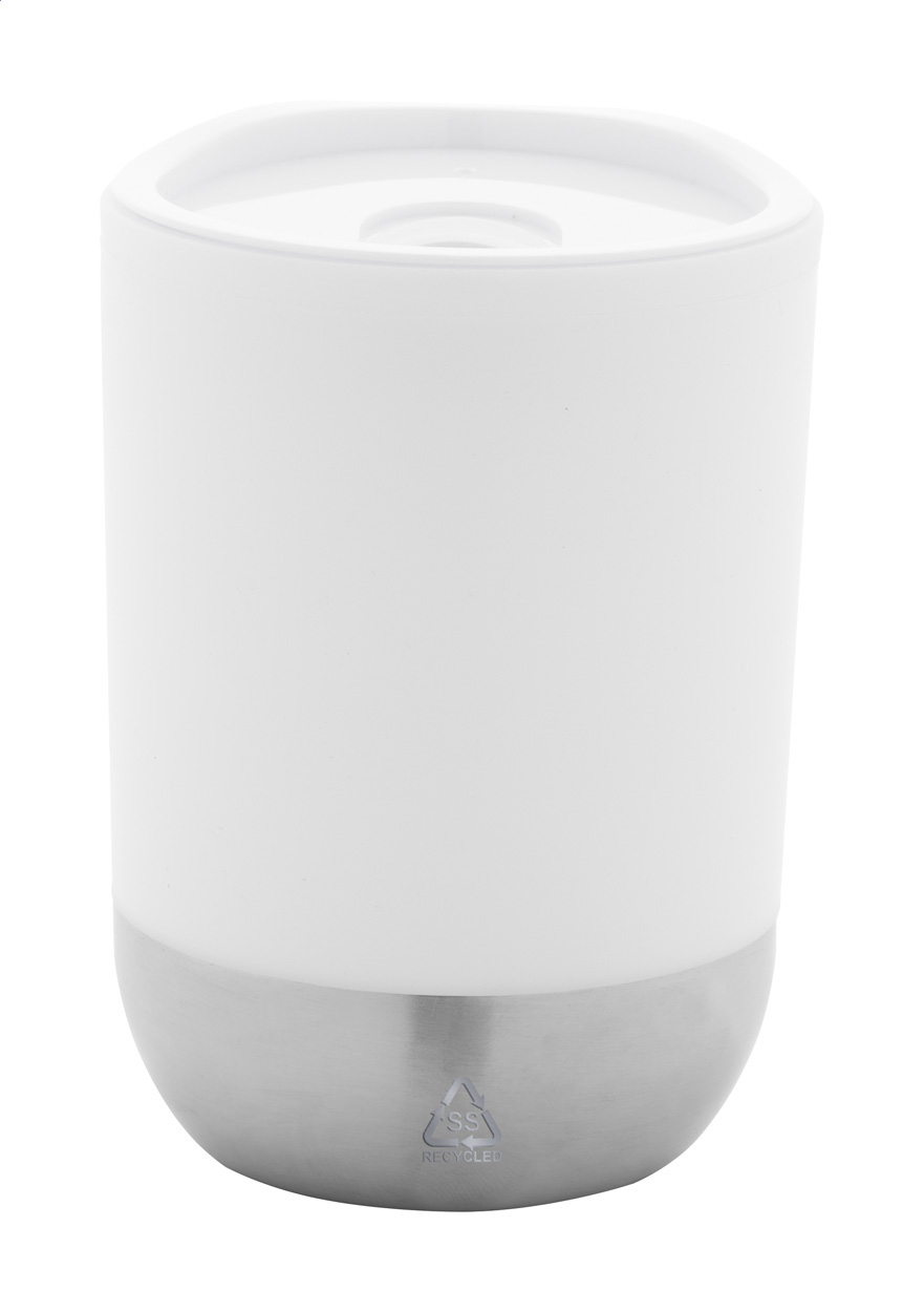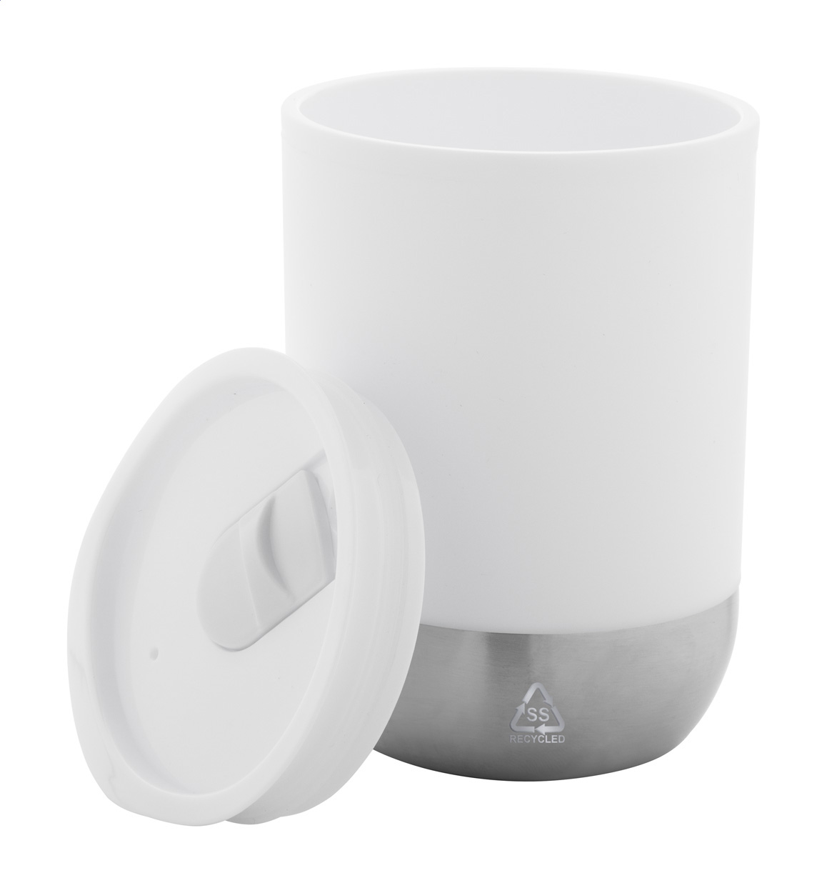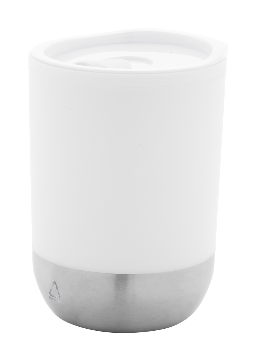 Dvoustěnný termo hrnek s PP plastovou izolací se dnem z recyklované nerezové oceli a víčkem na pití. 300 ml.