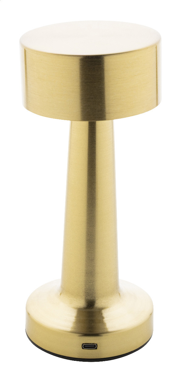 Kovová stolní lampa se zlatou povrchovou úpravou, 24 LED diodami, nastavitelným jasem a dobíjecí baterií USB 800 mAh. S režimy teplého, přirozeného a studeného světla. Včetně nabíjecího kabelu USB.