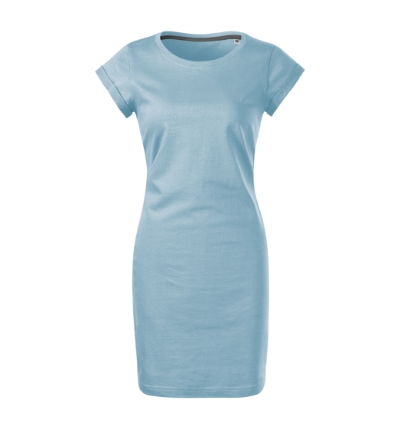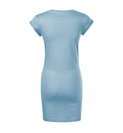 bez etikety - připraveno na rebranding, volný, lehce tvarovaný střih s bočními švy, délka nad kolena, hlubší kulatý výstřih, úzký lem průkrčníku z vrchového materiálu s 5 % elastanu, neutrální velikostní štítek v boční části průkrčníku, vnitřní část průkrčníku začištěna páskou v barvě 36, zpevňující páska od ramene k rameni, ohrnuté rukávy zachycené ve 4 bodech šitím