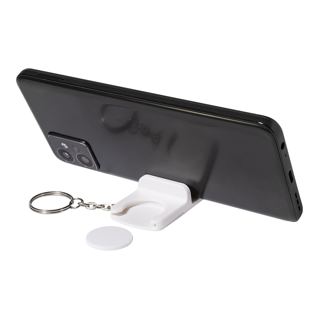 Přívěsek klíče se žetonem do košíku z recyklovaného ABS materiálu s držákem na mobilní telefon. Velikost mince: ø23×2 mm.