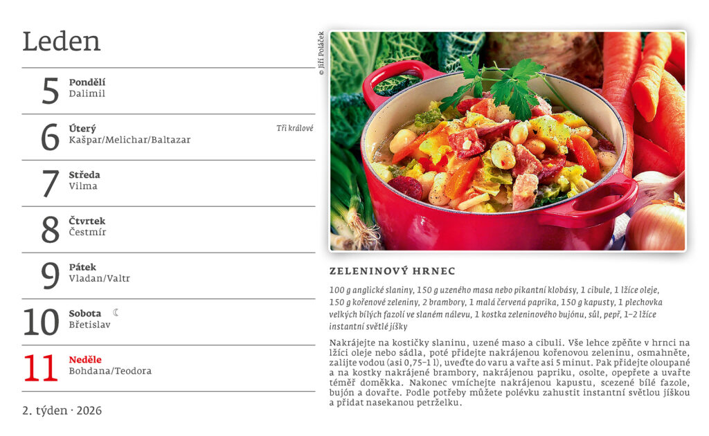 Formát kalendáře: 22,6 x 13,9 cm Kalendárium: české týdenní řádkové Počet stran kalendáře: 58 + 2 Stojánek: se zámkem Prostor pro přítisk: 22,6 x 3 cm