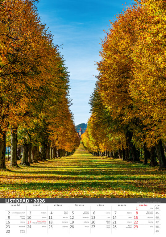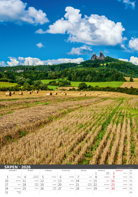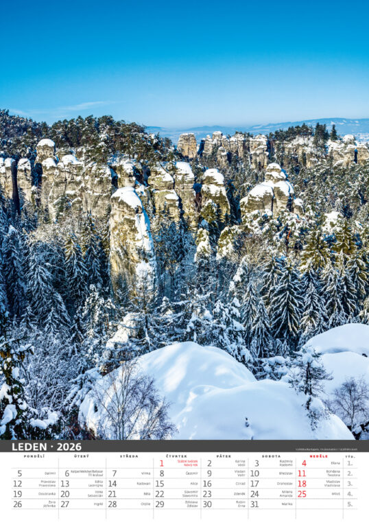 Formát kalendáře: 31,5 x 45 cm Kalendárium: české měsíční jmenné Rozsah kalendáře: 14 listů Vazba: Twin-wire (se spirálou) Prostor pro přítisk: 31,5 x 7 cm Autor: Jiří Morávek