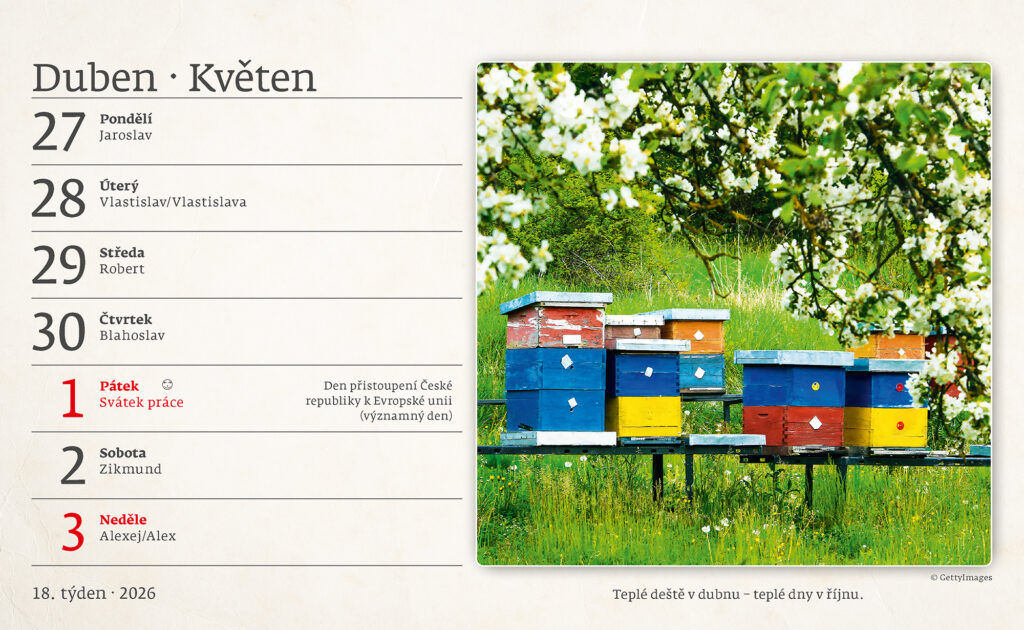 Formát kalendáře: 22,6 x 13,9 cm Kalendárium: české týdenní řádkové Počet stran kalendáře: 58 + 2 Stojánek: se zámkem Prostor pro přítisk: 22,6 x 3 cm + lidové pranostiky