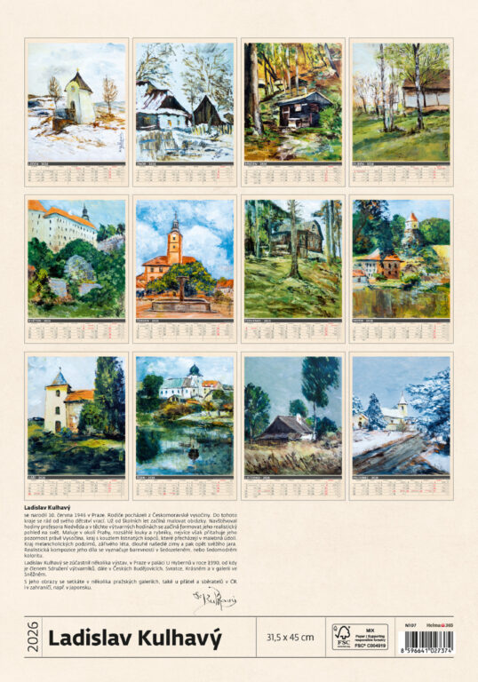 Formát kalendáře: 31,5 x 45 cm Kalendárium: české měsíční jmenné Rozsah kalendáře: 14 listů Vazba: Twin-wire (se spirálou) Prostor pro přítisk: 31,5 x 7 cm Autor: Ladislav Kulhavý