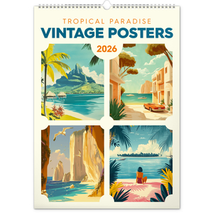 NOTIQUE Nástěnný kalendář Vintage plakáty – tropické ráje 2026, 33 x 46 cm