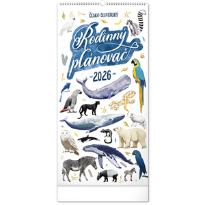 NOTIQUE Nástěnný kalendář Rodinný plánovací Animalium 2026, 21 x 42 cm