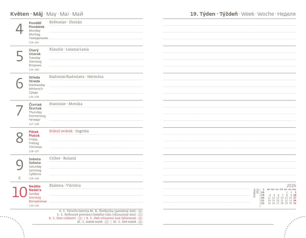 Formát diáře: 90 x 140 mm Rozsah diáře: 128 stran Kalendárium: týdenní kapesní + poutko na propisku + praktická kapsička