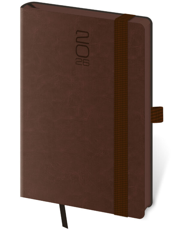 Formát diáře: 90 x 140 mm Rozsah diáře: 128 stran Kalendárium: týdenní kapesní + praktická kapsička + poutko na tužku + ořízka v barvě diáře + papír bloku chamois