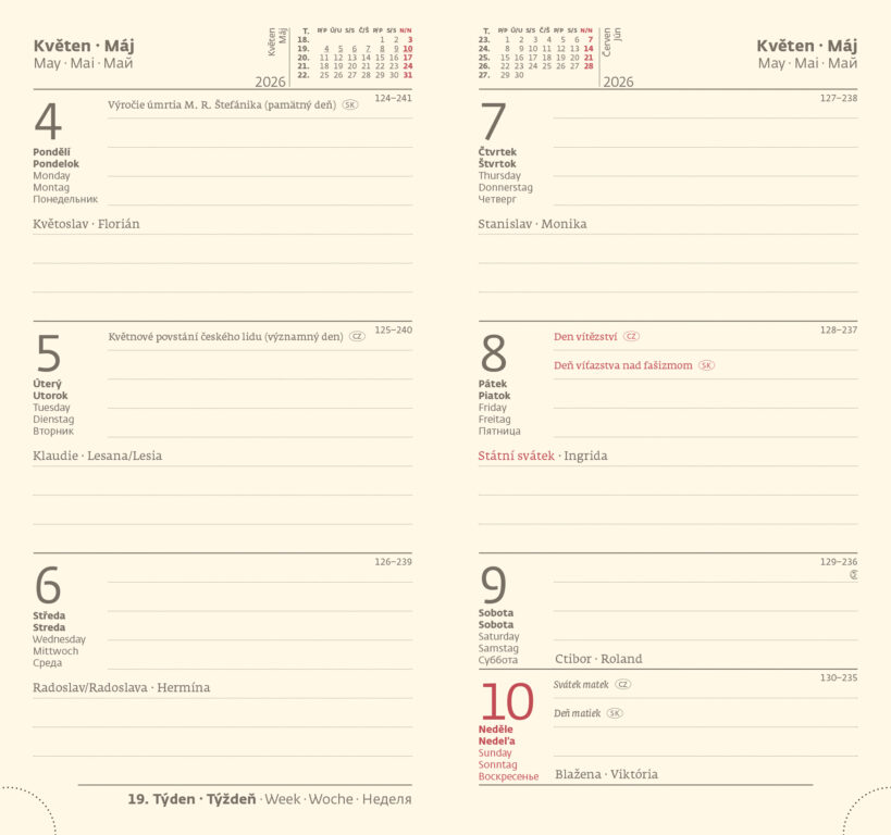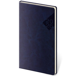 Formát diáře: 80 x 150 mm Rozsah diáře: 128 stran Kalendárium: týdenní kapesní + papír bloku chamois