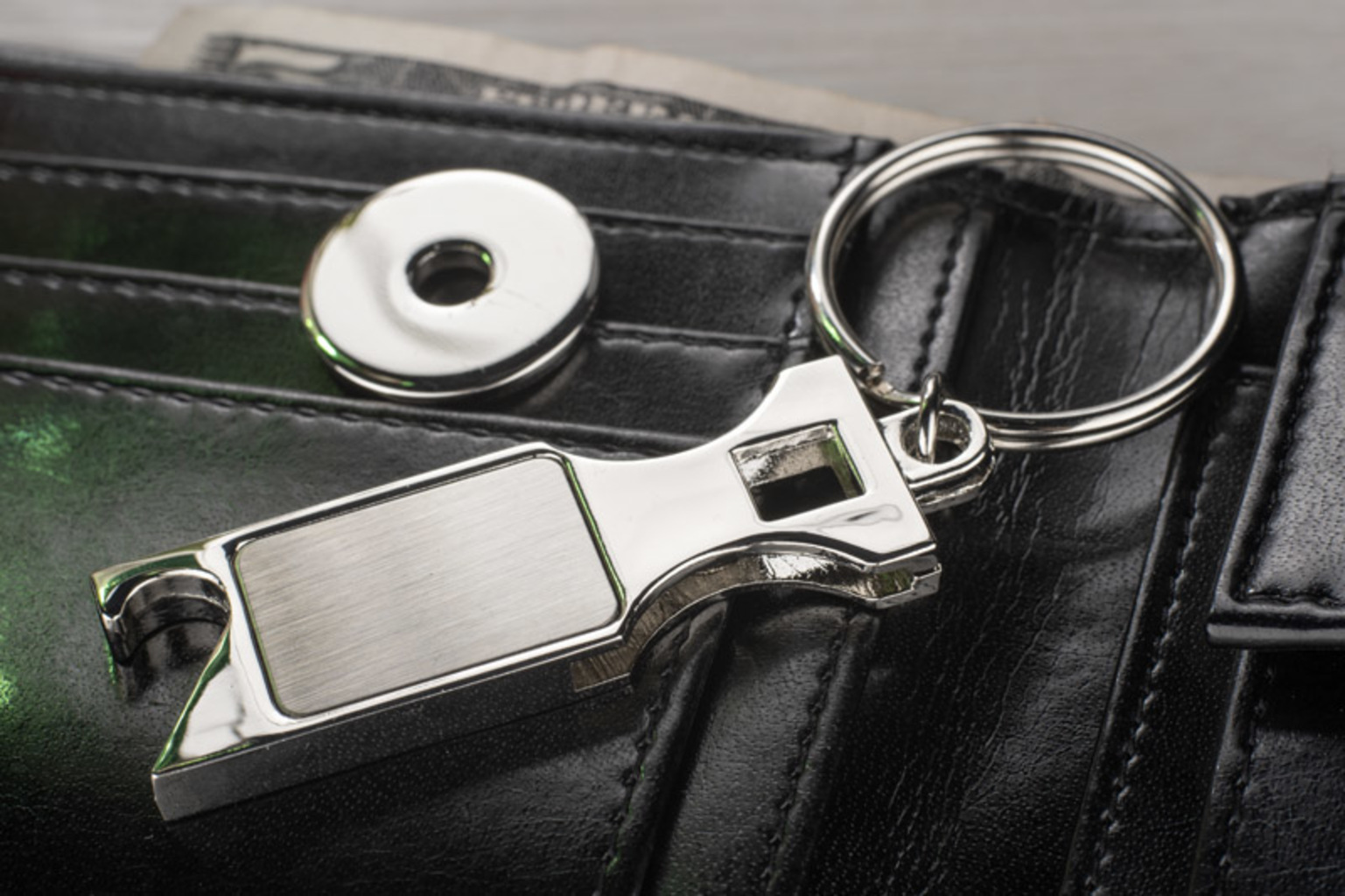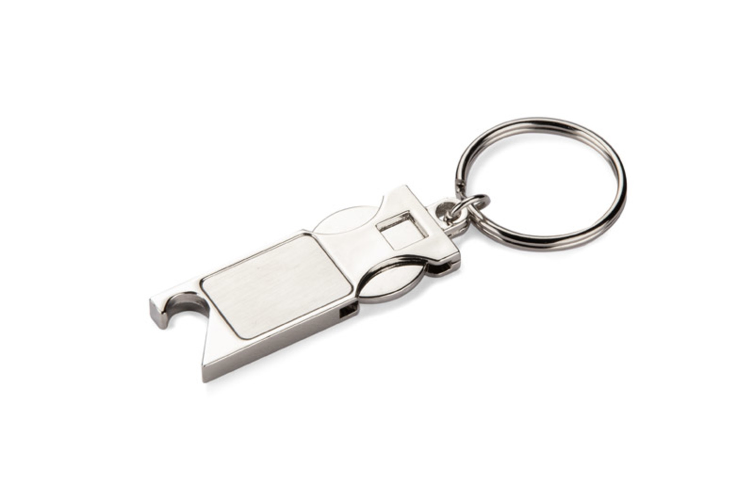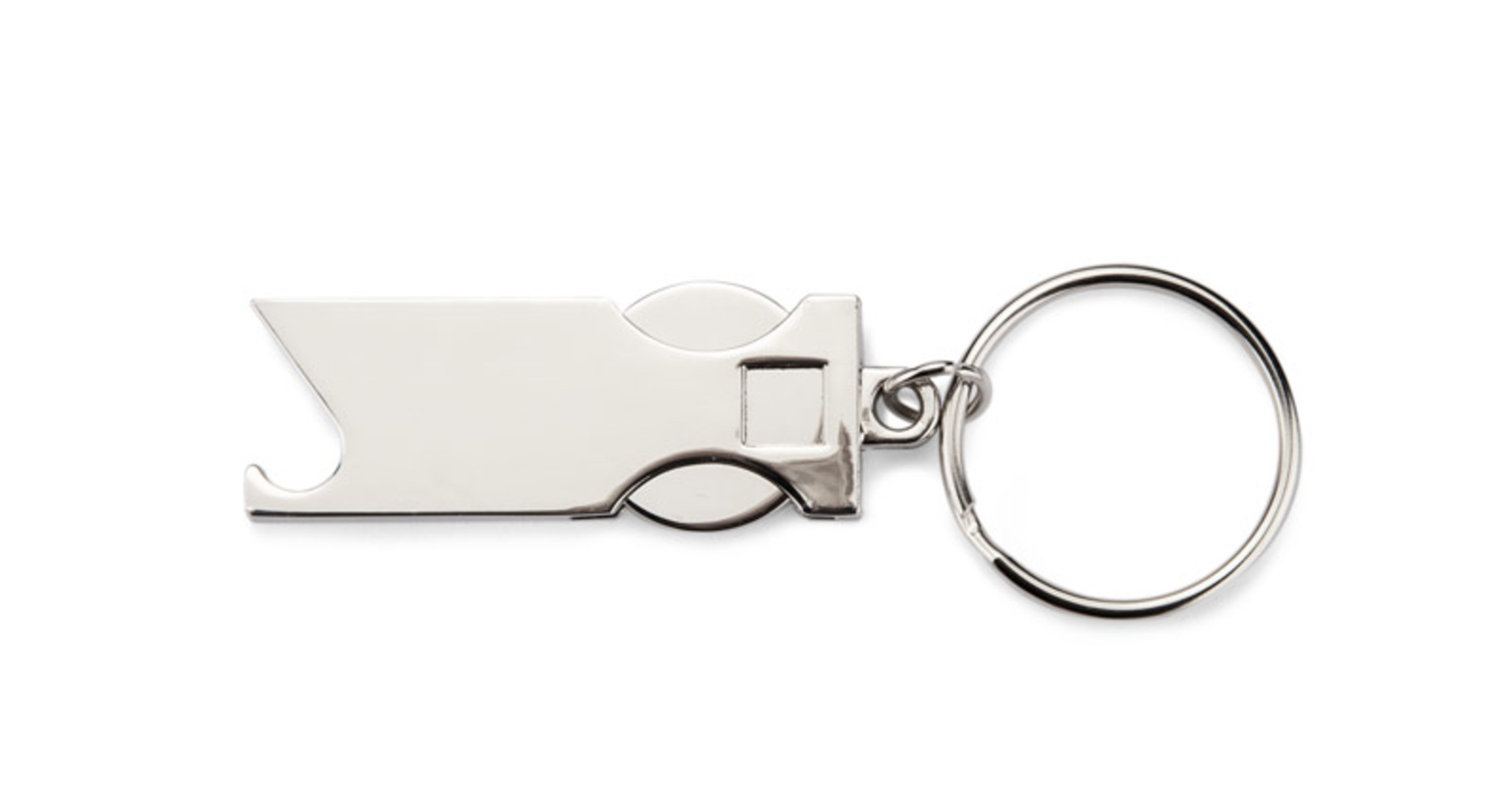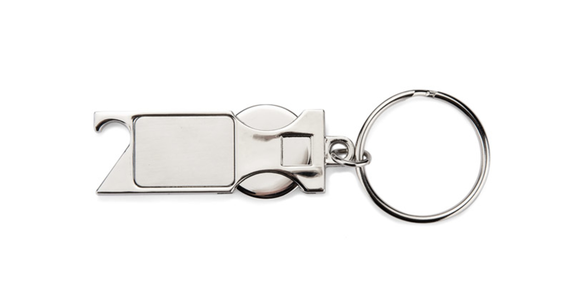 Kovová klíčenka SPRITI je elegantní a odolná reklamní pomůcka, která kombinuje funkci otvíráku na lahve a žetonu na nákupní vozík.