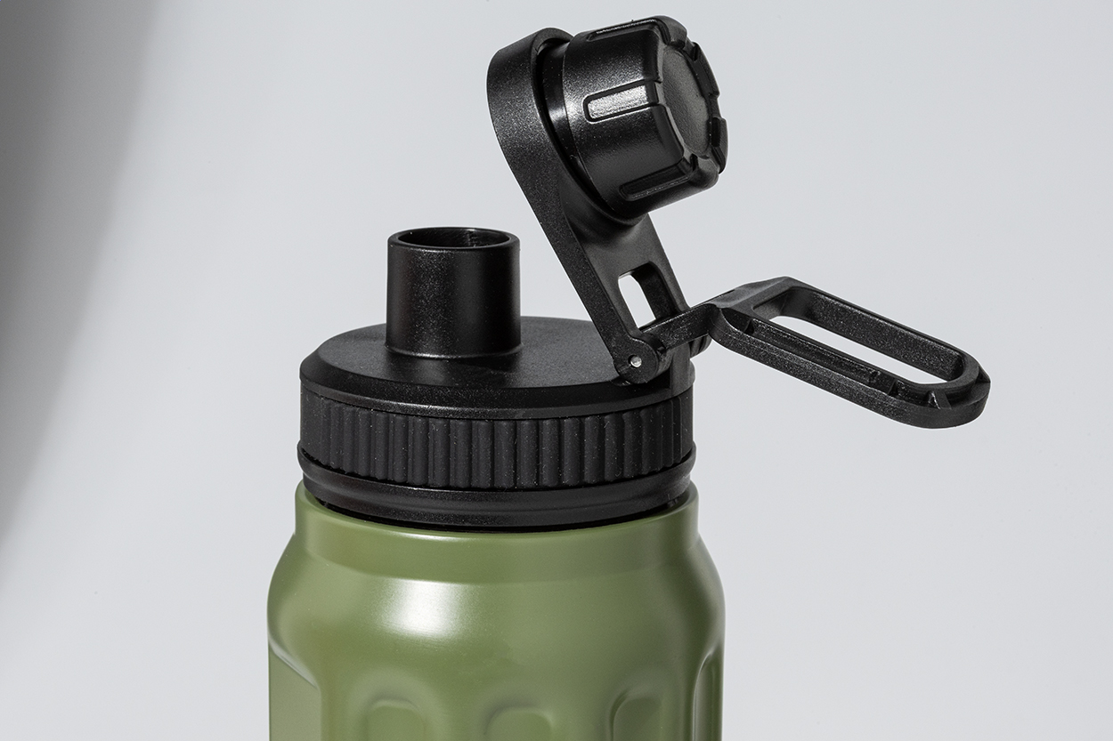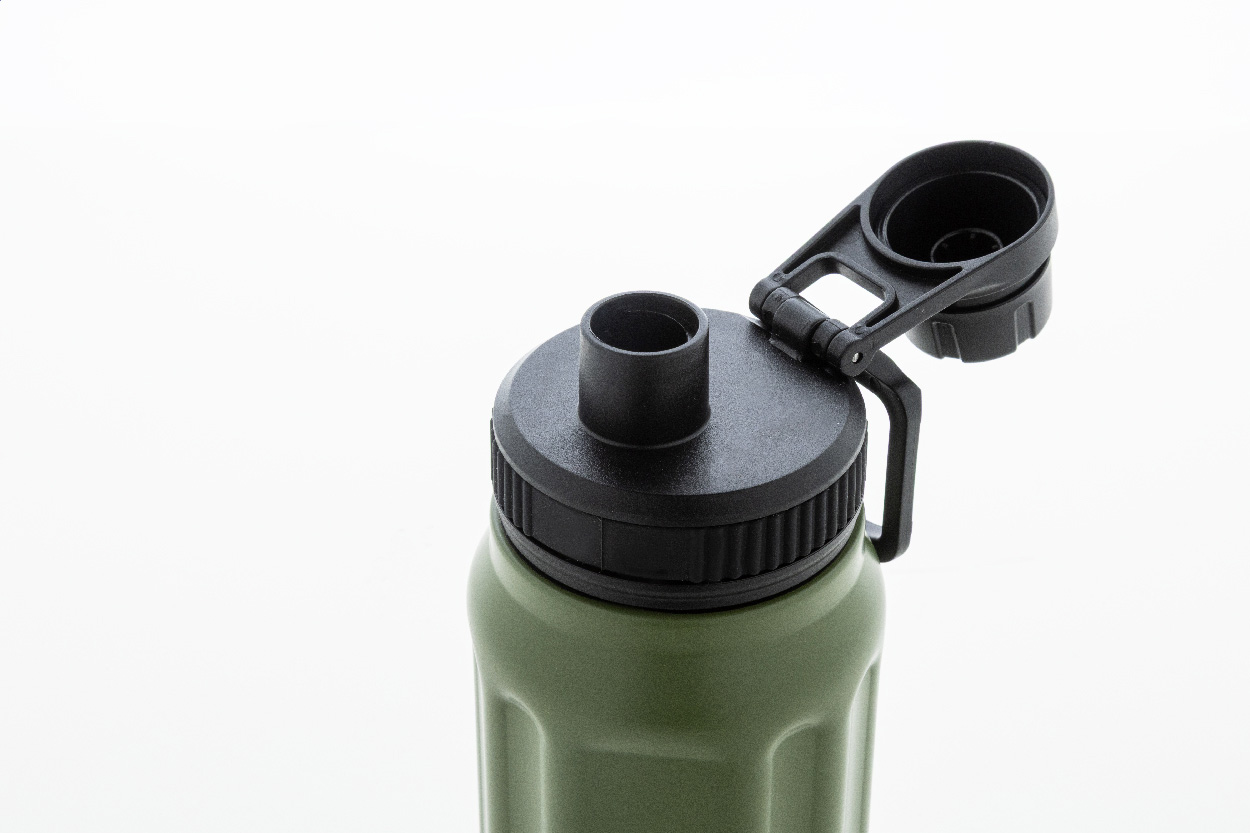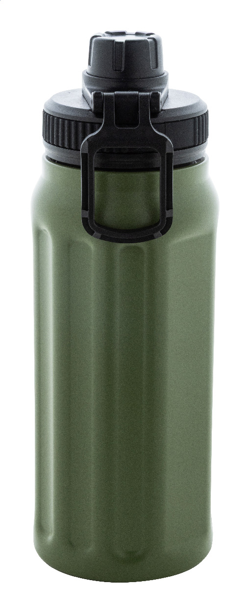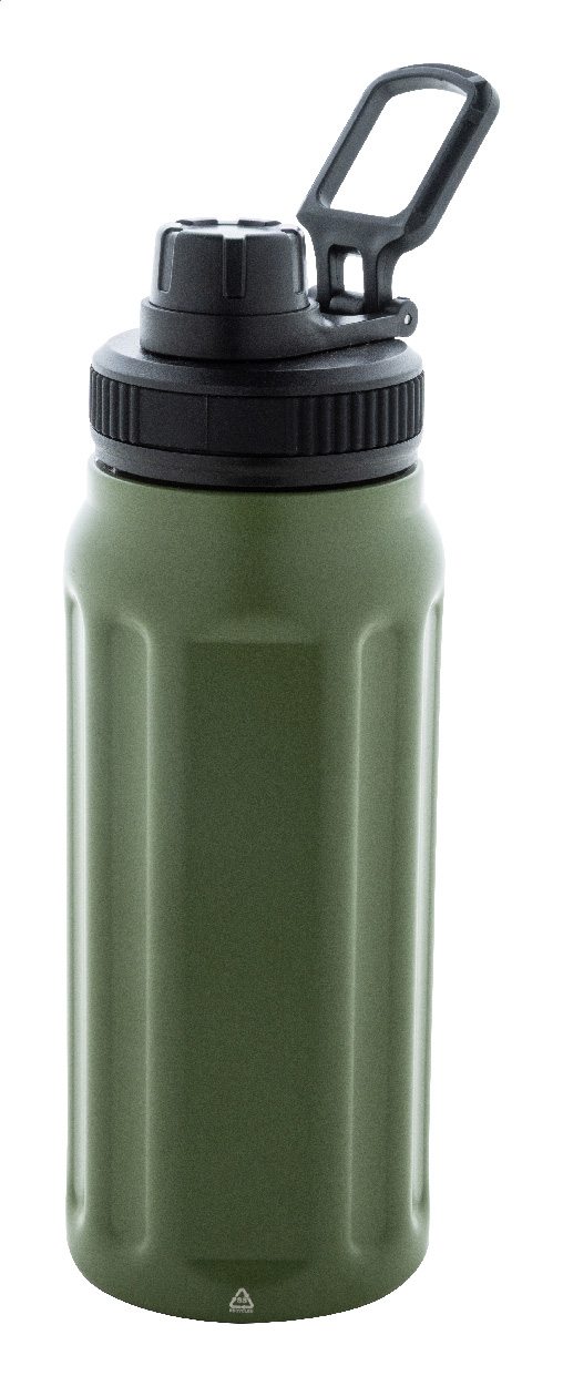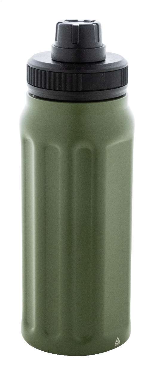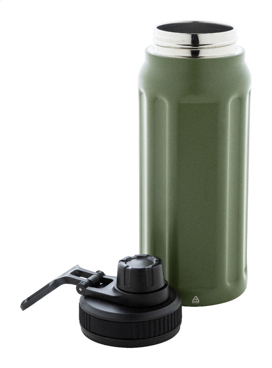 Dvoustěnná termoska z recyklované nerezové oceli s vertikálními drážkami. S víčkem z polypropylenu a s integrovaným držadlem. 540 ml.