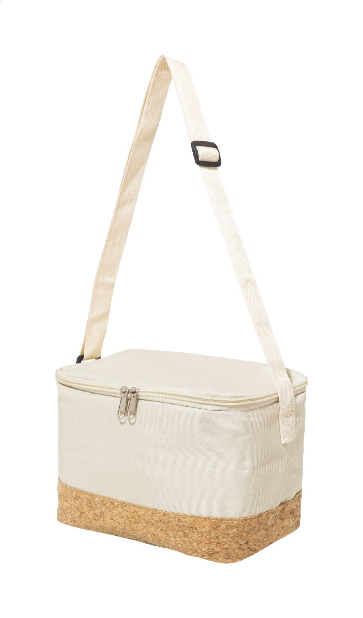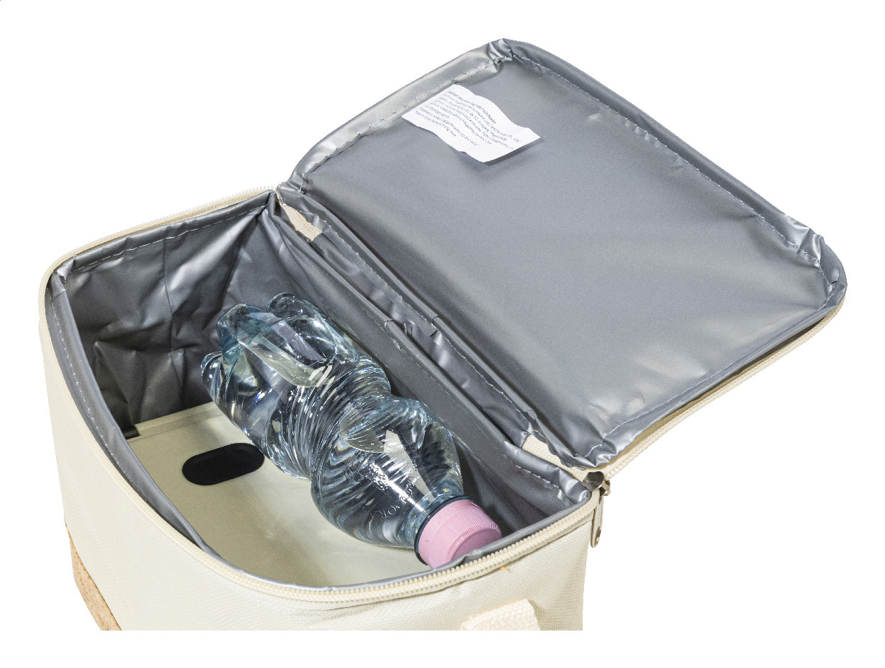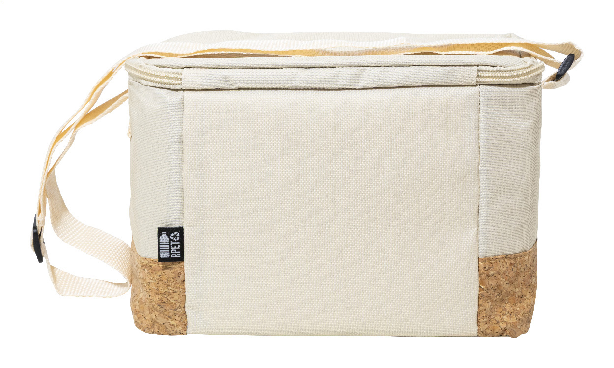 Chladicí taška na zip z 600D RPET polyesteru s přírodní korkovou základnou, PEVA polstrováním a nastavitelným ramenním popruhem. S výrazným štítkem RPET.