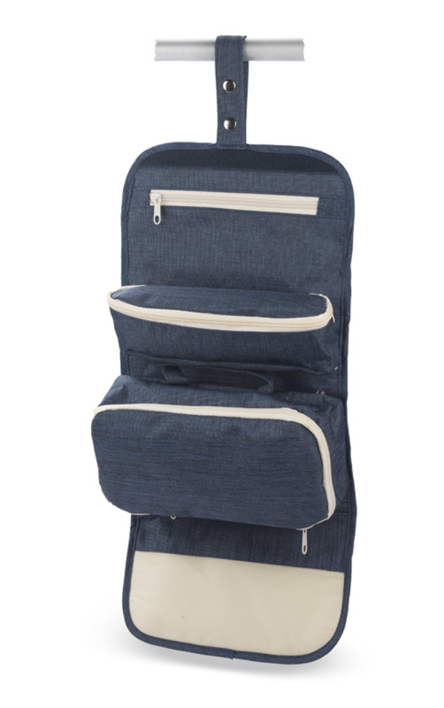 ROLLI make-up case na cesty je ideální. Make-up case je vybaven dvěma menšími odnímatelnými sáčky, kapsou na zip a držákem pro zavěšení případu v koupelně, například na ručník. Make-up case je vyroben z příjemného 300D 2-strand polyesteru.