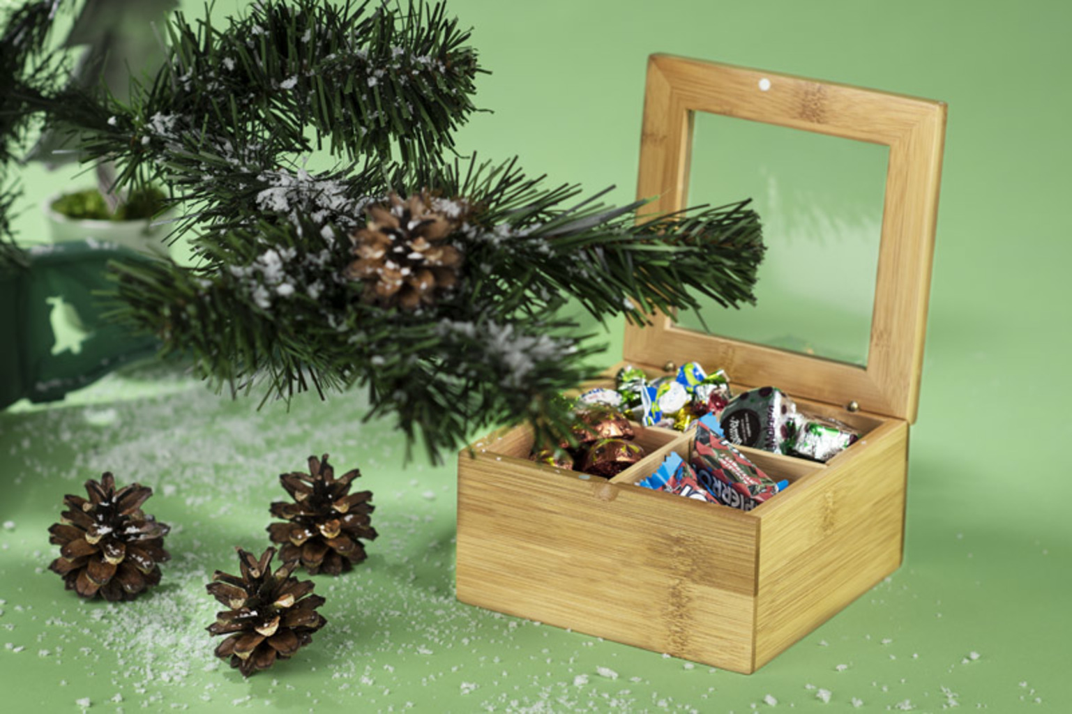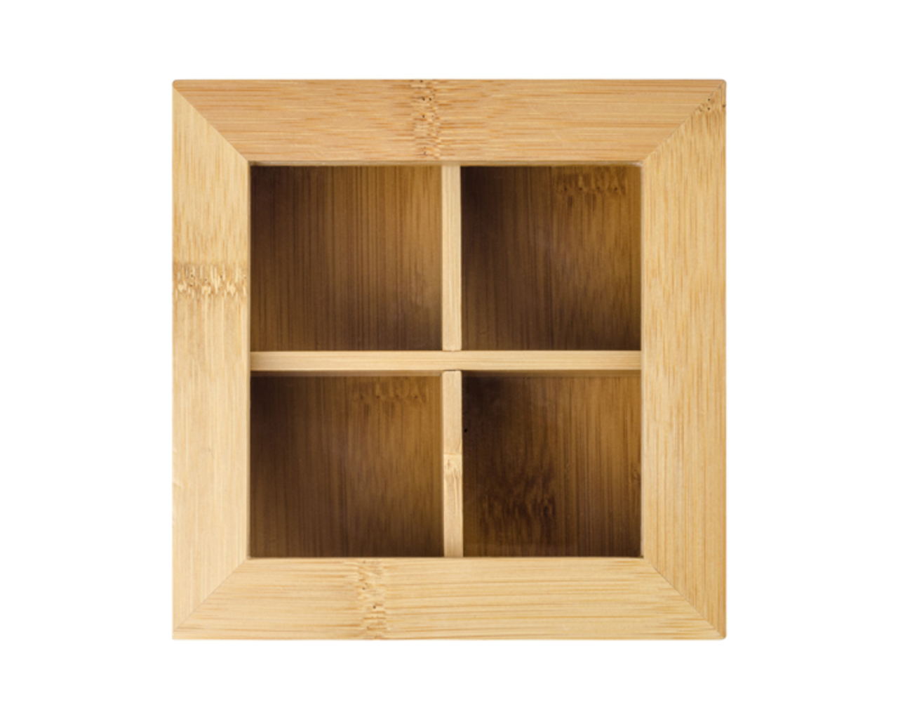Stylová krabička na čaj z bambusu. Krabička je rozdělena do čtyř částí, což usnadňuje ukládání různých druhů čaje.