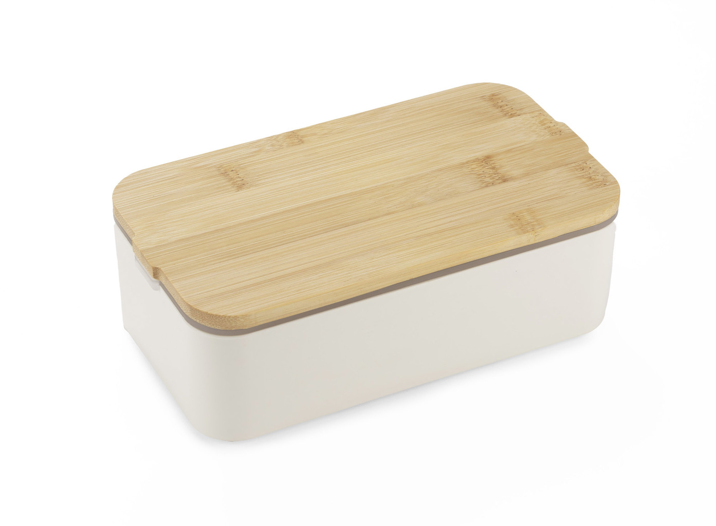 Krabička na jídlo SINGLE je vyrobena z plastu, má bambusové víko a elastickou těsnící gumu bránící náhodnému otevření. Má jednu komoru. Krabička může být použita v myčce, mikrovlnné troubě i v mrazáku